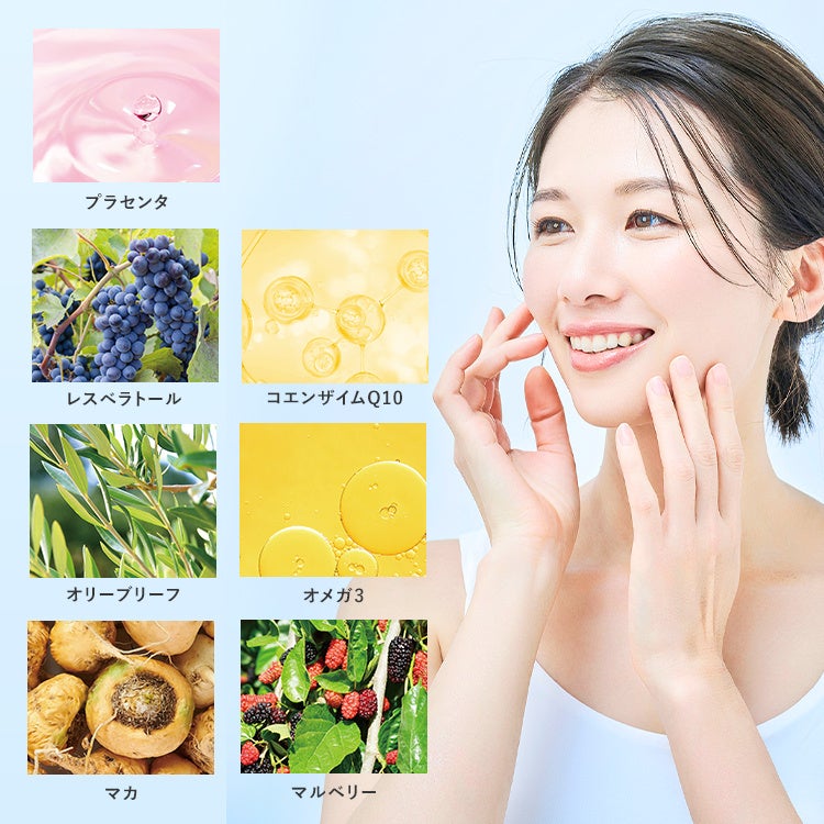 エイジングサインや⼥性バランスの乱れ、太陽の下でのダメージもこれ1つでまとめてケアし、若々しさと美しさを内側から⽀えます。