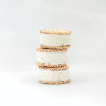 ごまと米粉で焼き上げたサクサク食感のクッキーで、白 ごまのアイスクリームをはさみしました。ごまの香ばしさと濃厚な味わいを一度に楽しめて、食べ応えもばっちり。かわいらしいフォルムで、見た目にも楽しいクッキーサンドアイスクリームです。
