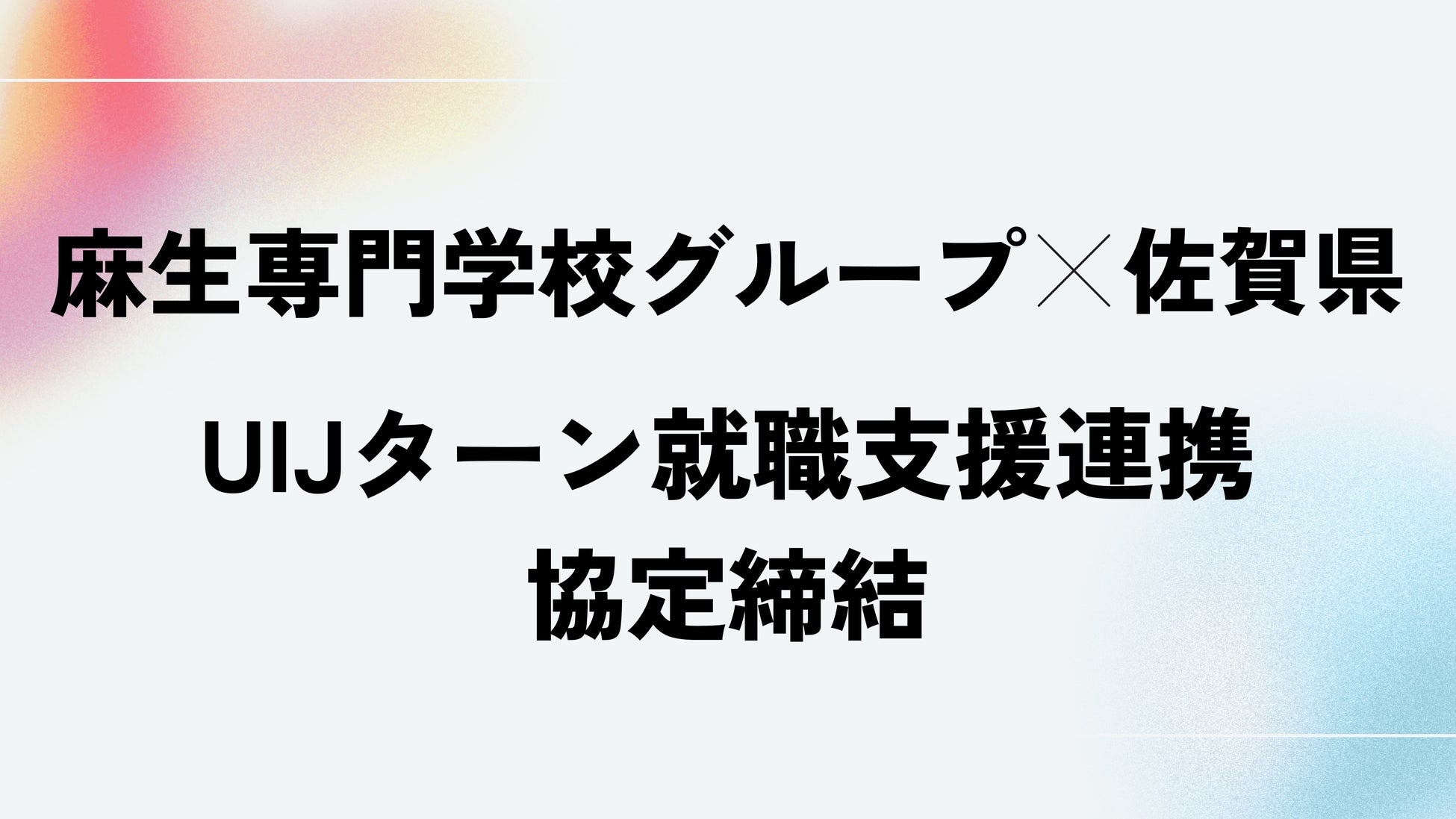 本協定は、学生のUIJターン就職活動の支援について、佐賀県と麻生専門学校グループが相互に連携・協力し、佐賀県出身の学生を中心にUIJターン就職の一層の促進を図ることを目的としています。