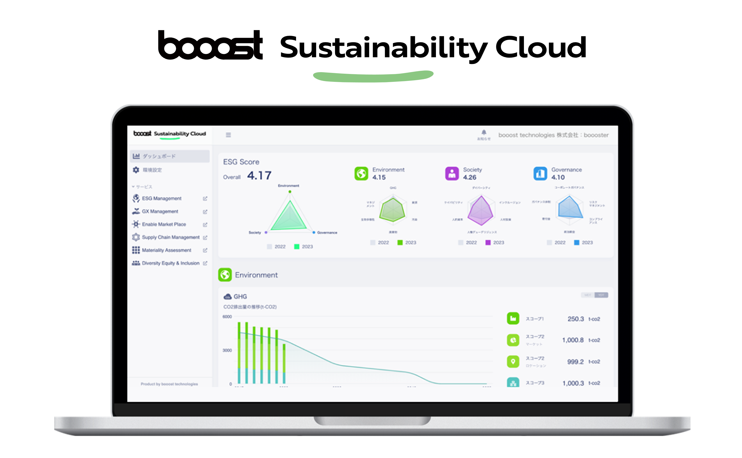 事業内容: booost Sustainability Cloud(booost GX、booost Supplier、booost ESG、booost Energy)の開発運営