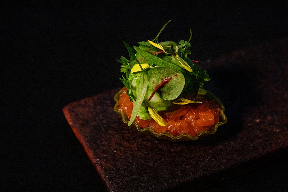 レストランという場所では、まず一番に、料理を味わいながら食事を楽しんでいただきたいと思っています。僕にとって料理とは、それぞれの人が純粋に楽しさやおいしさ、美しさというものを感じられることが根本であり、循環や調和といったテーマに繋がっていくものだと考えています。今回のポップアップディナーでは、自分の代表的なメニューでもある愛媛の赤土を使って調理するビーツの一皿をはじめ、相模由来の食材を中心に好奇心を刺激するような料理で新たな食体験をご提供できればと思っています。まずはお皿の上の料理を自由に楽しんでみてください。