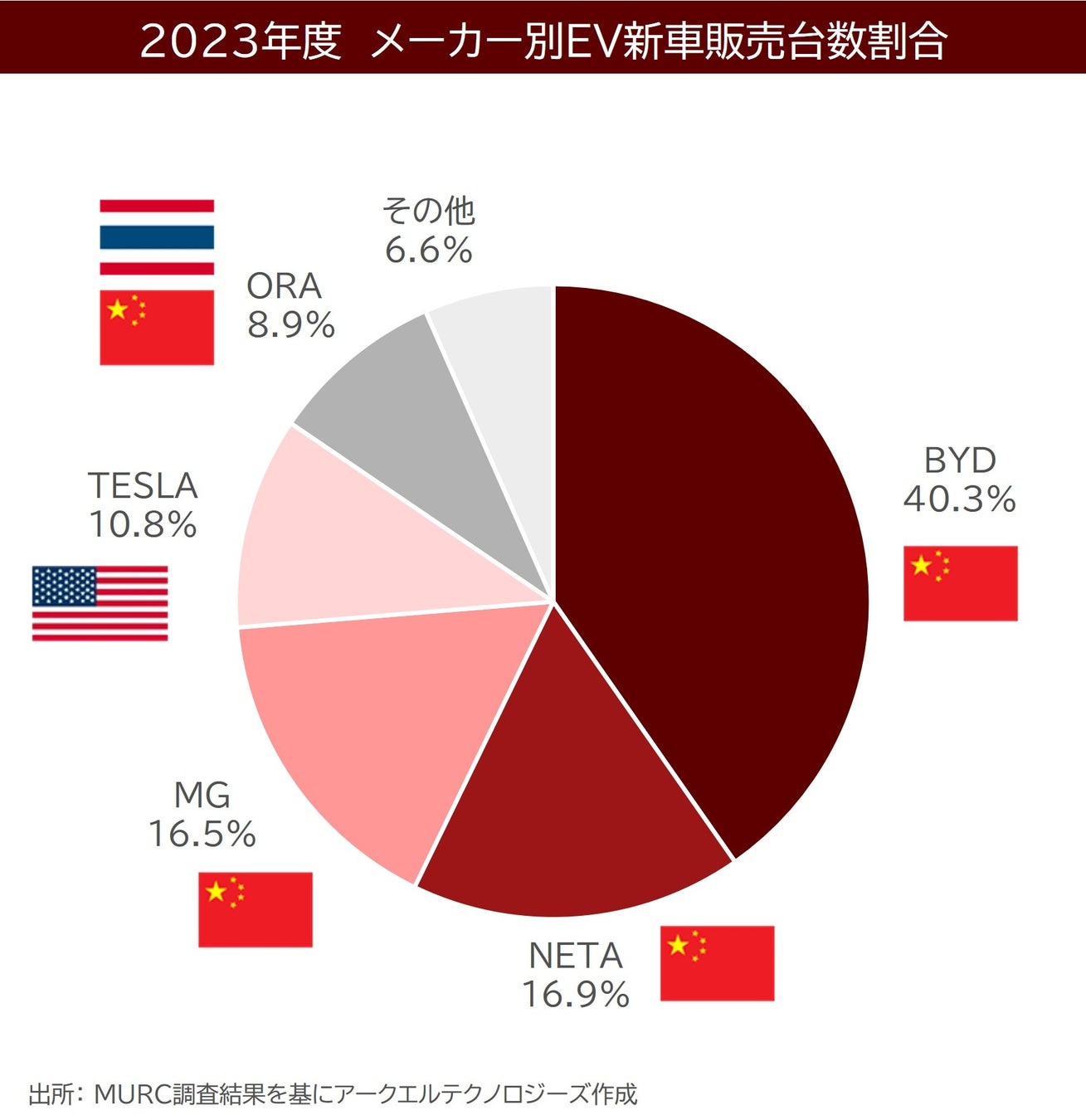 また、現在タイで普及しているEVは中国メーカー製のものが大部分を占めています(下図参照)。公営路線バス会社によると、これまでは日本製バスを採用していましたが、EVへの切り替えで今後は使用されなくなる見通しです。