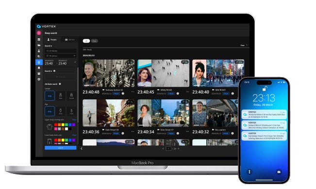 VIVOTEKのクラウドプラットフォーム「VORTEX」と、ハイブリッドクラウドプラットフォーム「VORTEXコネクト」を使ったデモを行います。VORTEXは、「QRコードをスキャンするだけでカメラを接続でき、複雑な設定が不要」、「全機種AI対応」、「暗号化とNDAAに対応。サーバーが日本国内にあり安心安全」といったユーザー目線の特長がたくさんのプラットフォームです。いつでも、どこでも、どのデバイスからでも簡単に接続できるため、複数拠点の一括管理が必要なシーンでの利用にも最適です。会場では、実際に世界中に設置されたVORTEXカメラのライブ映像を一画面でご覧いただけます。