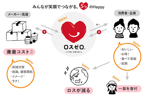 食品製造や流通段階で行き場を失った余剰・規格外食品を消費者に直接つなぐEC(BtoC)事業、サブスクリプション「ロスゼロ不定期便」のほか、未利用の原材料を使ったアップサイクル食品DtoC事業を運営しています。