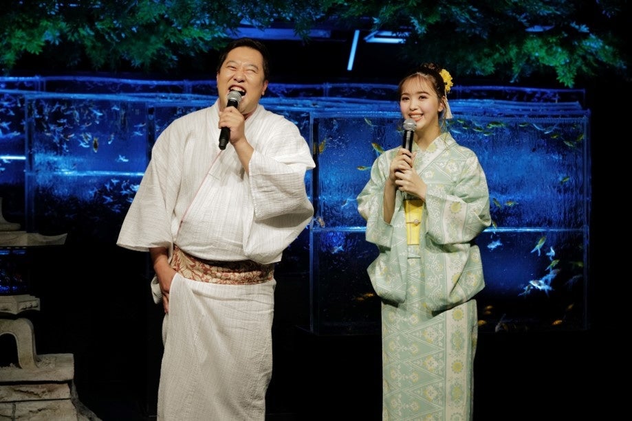 6月29日(木)に開催した夏の特別企画「夏のアートアクアリウム展2023~銀座の金魚~」の開催記念イベントに、藤田ニコルさんととにかく明るい安村さんにお越しいただきました。プライベートでも仲が良いというお2人に は、夏の特別演出を楽しんでいただきながら、印象に残る夏の思い出や、安村さんが考えるニコルさんをもてなすデートプランをお話しいただきました。