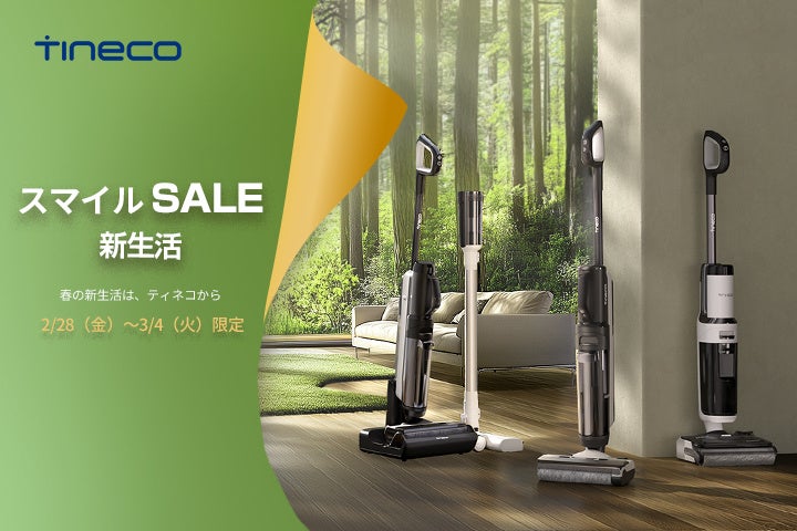 米国・欧州・日本においてAmazonでコードレス水拭き掃除機のベストセーラーNO.1(※1)の販売実績を誇るティネコインテリジェント株式会社(日本支社:神奈川県横浜市、代表取締役:冷泠・レイリン、以下、Tineco)は、進学や就職を迎えるお客様に応援するために2月28日(金)9時から3月4日(火)23時59分まで開催される「Amazon スマイルSALE 新生活」(https://www.amazon.co.jp/newlifesale)において、「一人暮らし」や「2人以上のご家庭向け」に厳選した製品が最大38%OFFとなる特別セールを実施いたします(※2)。