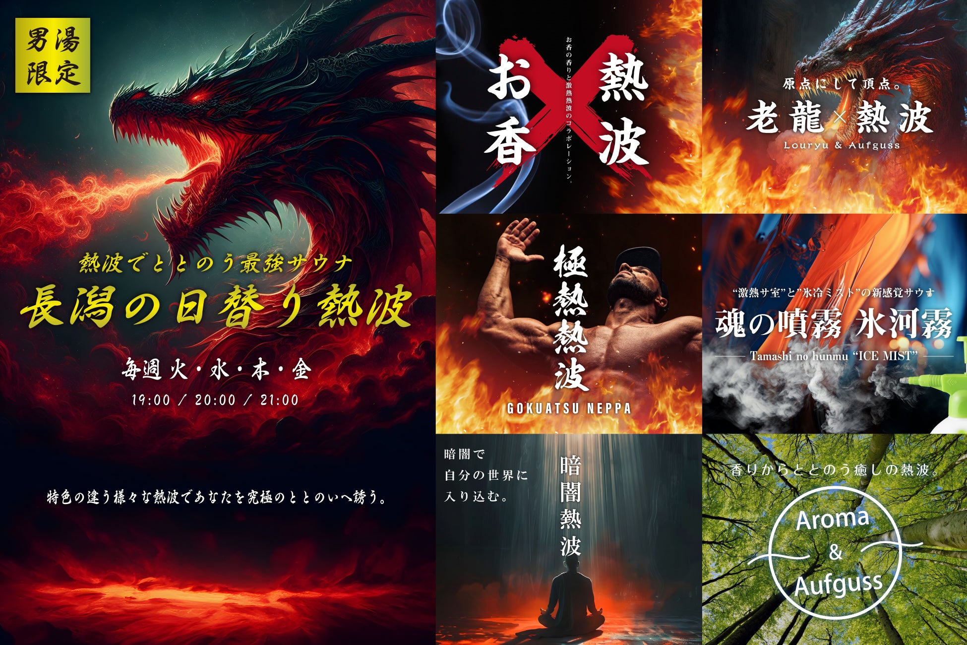男性浴室では毎週火曜日から金曜日に「日替わり熱波」を開催しています。また、それを担当するのは長潟スタッフ!普段とは一味違ったサウナに入りたい方、サウナに入ってるのに冷たい…そんな長潟流究極のととのいをぜひ一度体験していただければと思います。