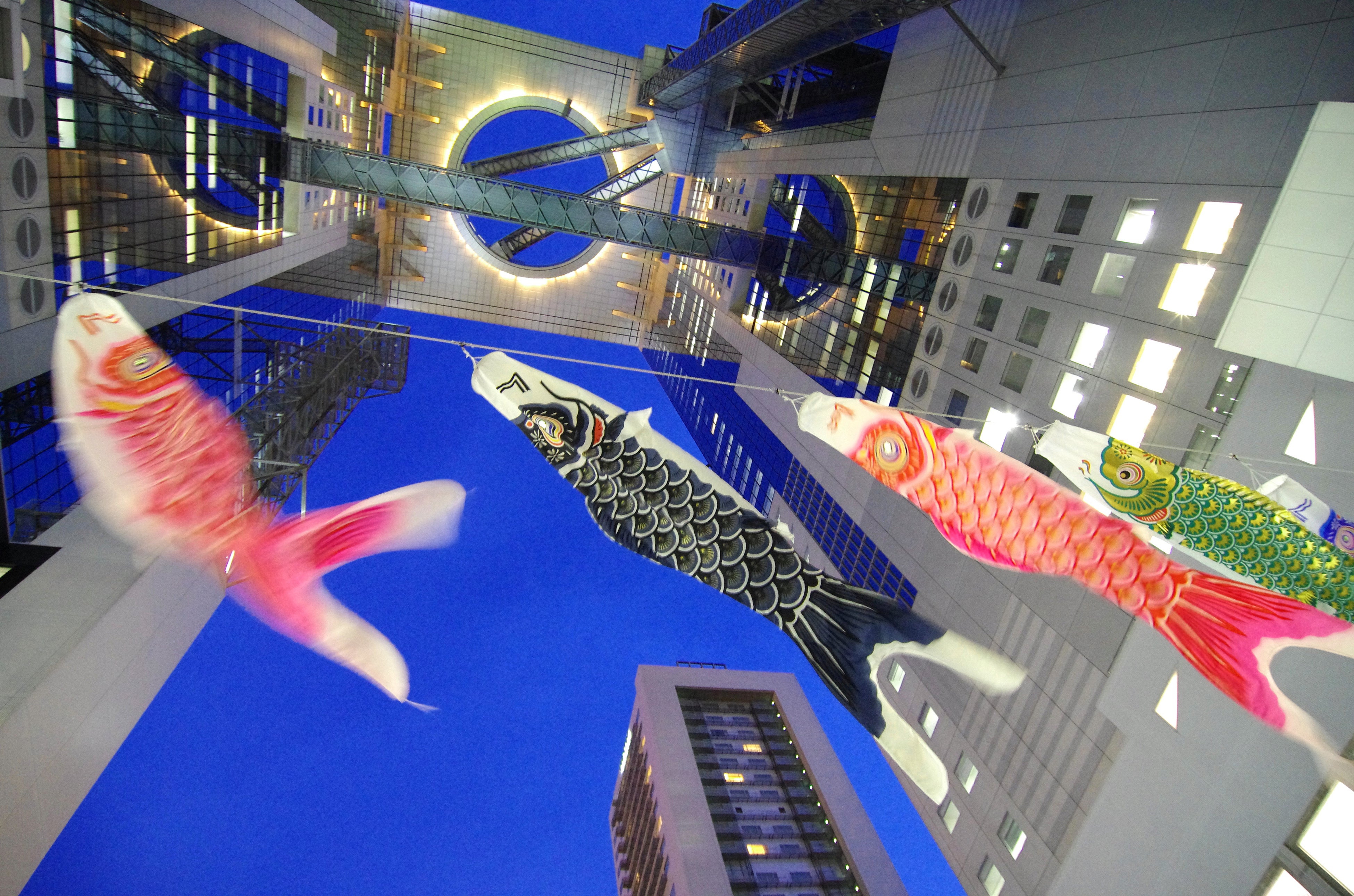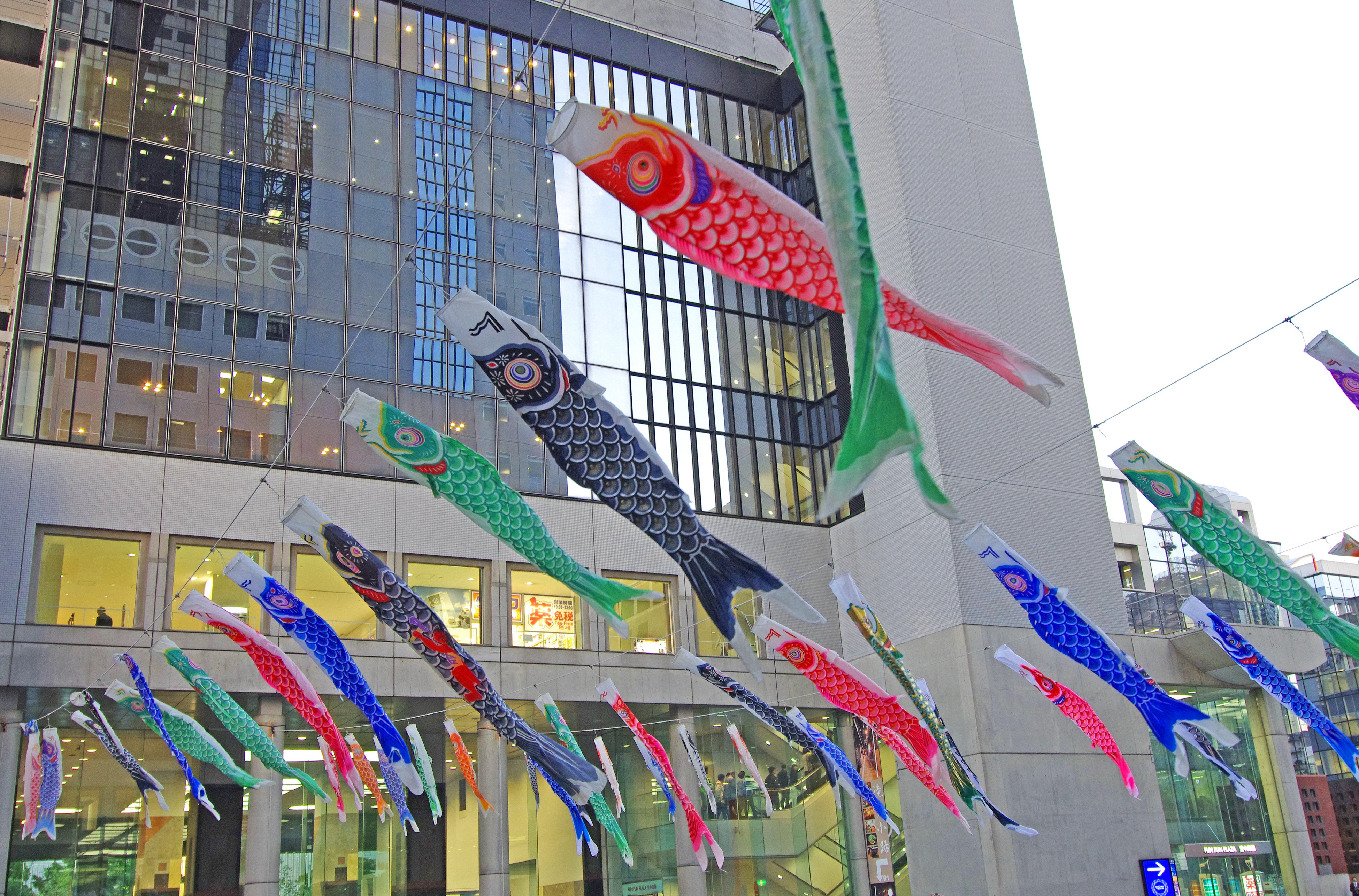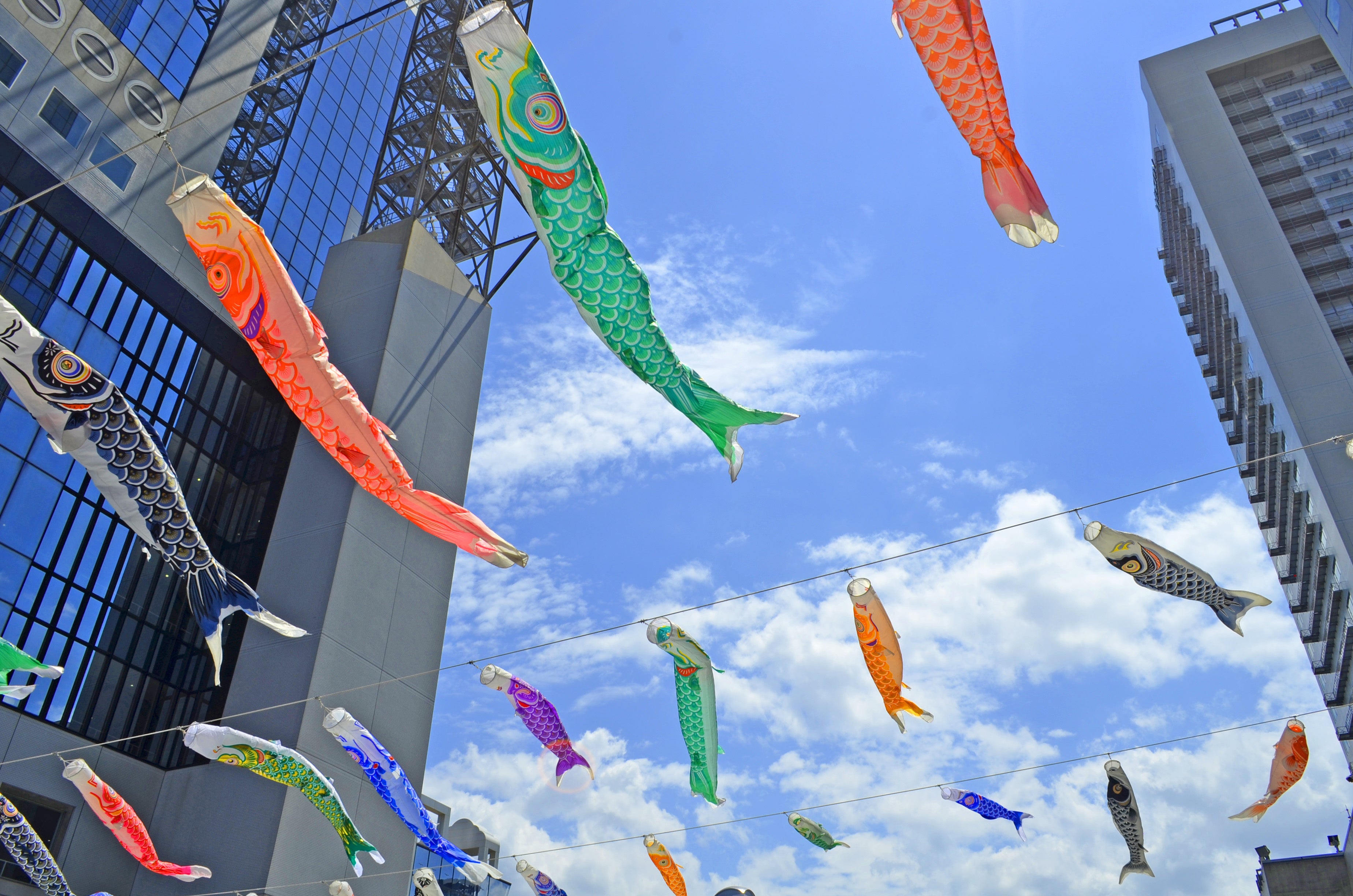 梅田スカイビルでは子どもたちの健やかな成長を願い、毎年恒例で開催している「鯉のぼりの放流」。