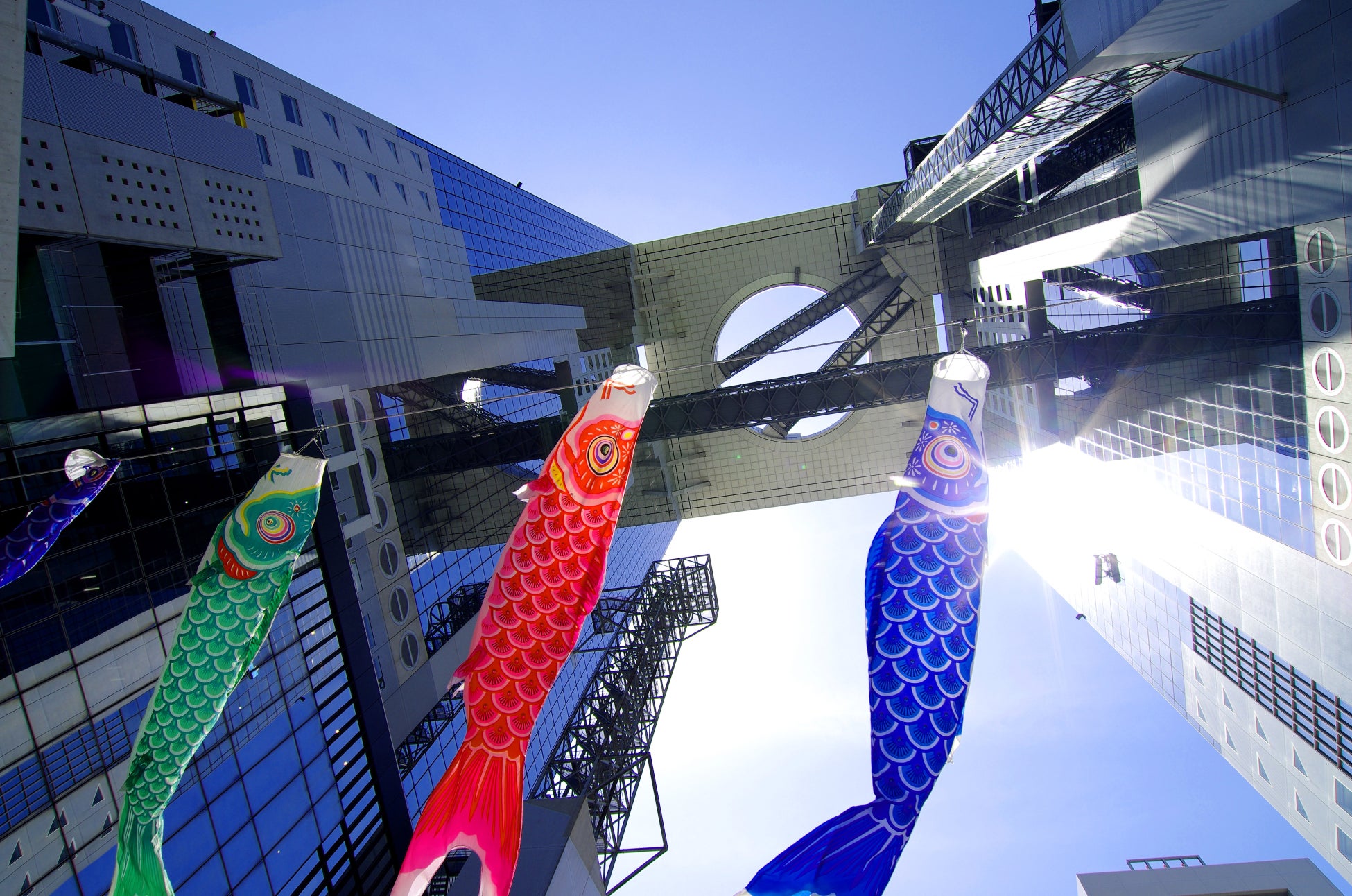 梅田スカイビルでは、2024年4月15日(月)~5月6日(月・祝)の期間、約100匹の鯉のぼりを放流いたします。< https://www.skybldg.co.jp/new/2325.html >
