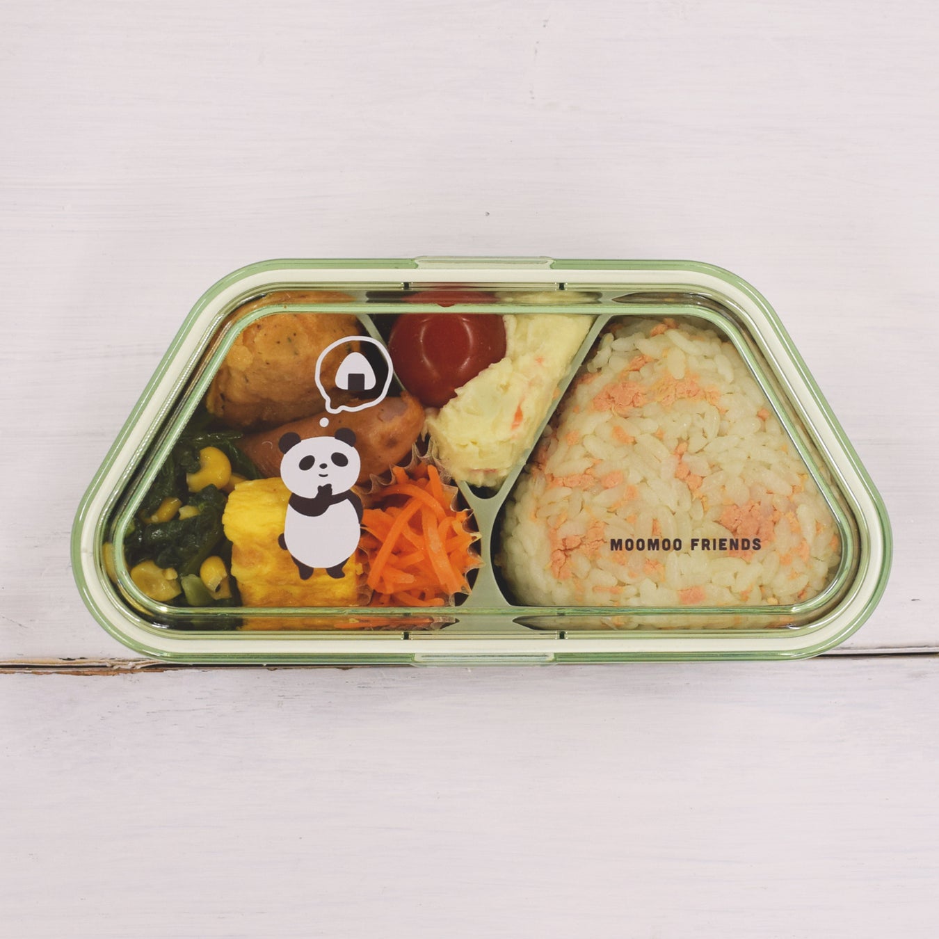 「ムームー 抗菌おにぎりランチ」は使いやすい明るいカラーに大人気のムームーフレンズのキャラクターがおいしそうにおにぎりを頬張る様子がプリントされています。