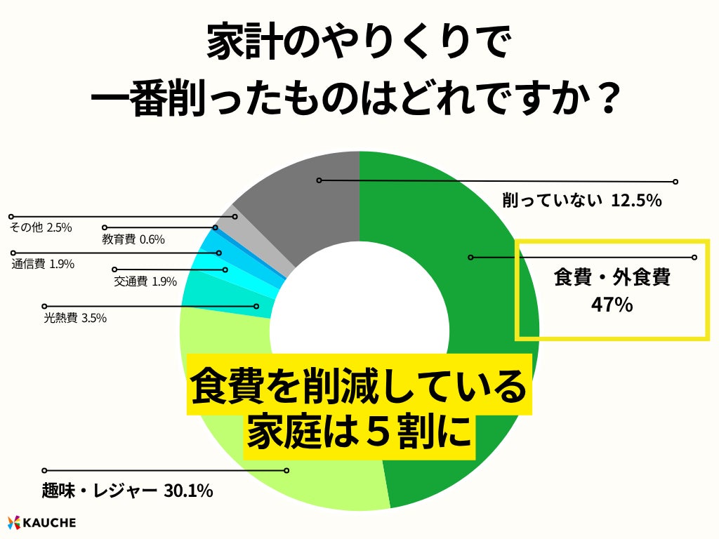 「家計のやりくりで一番削ったもの」を尋ねたところ、「食費・外食費」が47%で最多。