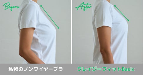 クレイジーフィットBasicは、シンプルかつヘルシーなデザインで、お洋服にブラ線が響く心配もありません。脇高構造だから、背中もスッキリ!Tシャツブラとしても大活躍間違いなし!背中見せや肩見せにも便利です。