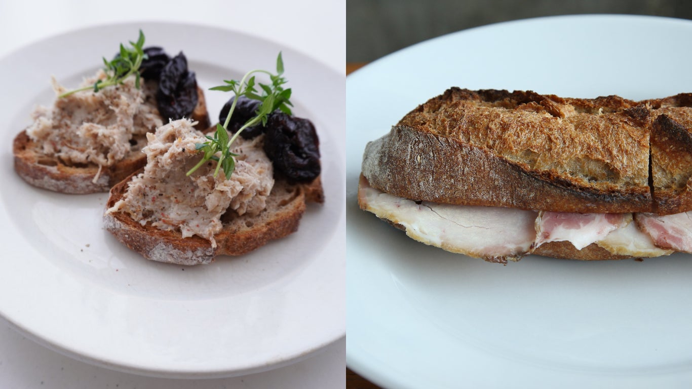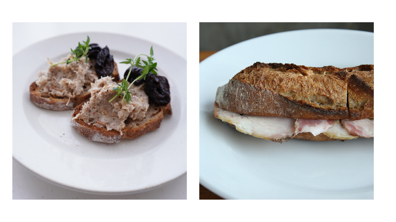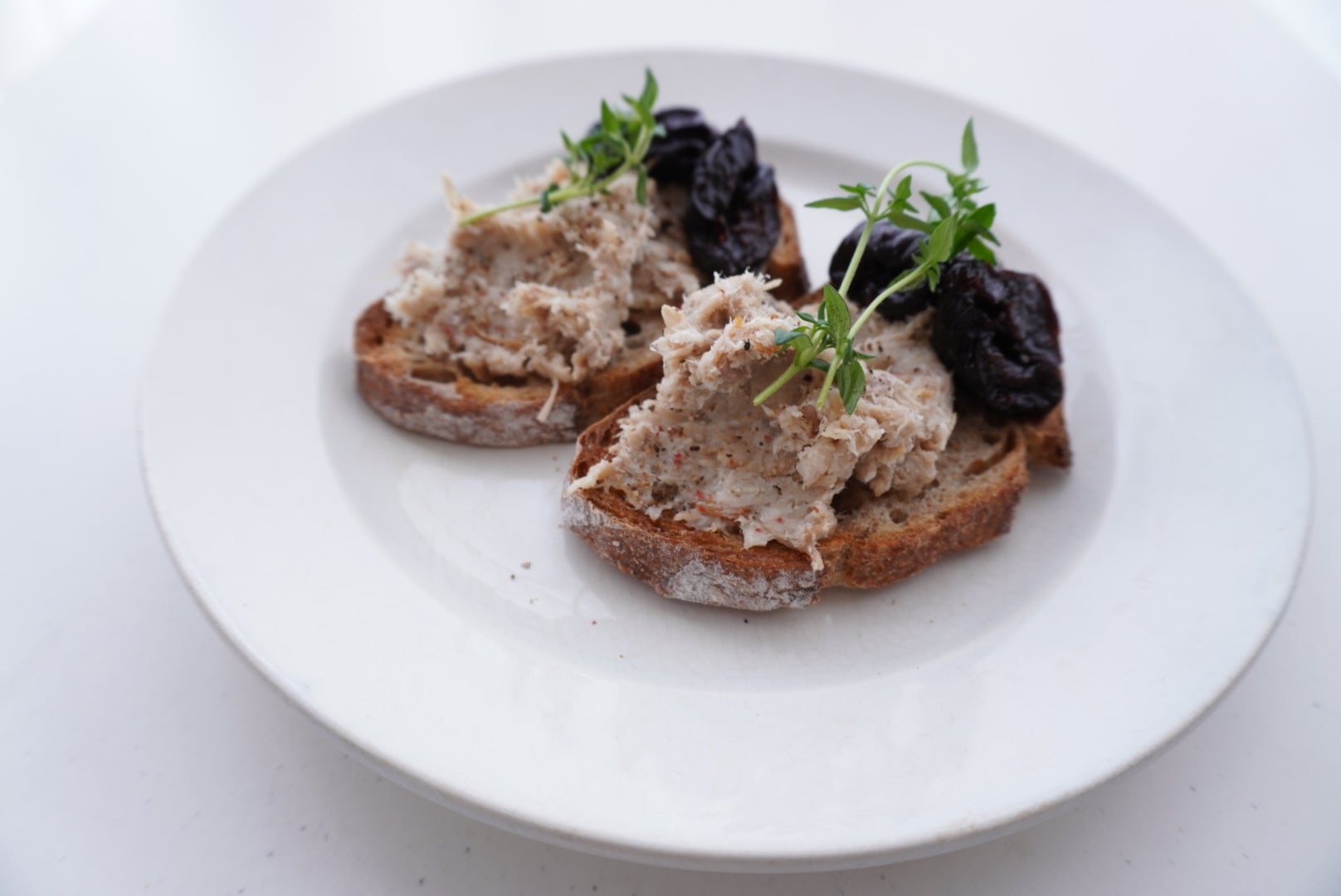豚肉のリエットとプルーンを乗せて。具材を乗せるだけで、おしゃれなひとさらに。