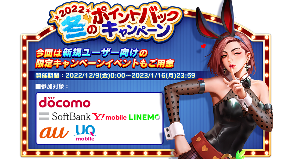 ※全アプリ内でのキャリア決済課金がキャンペーン対象となります。ECサイトでの物販購入は対象外です。※無料お試しなど決済が発生していない場合は対象外です。