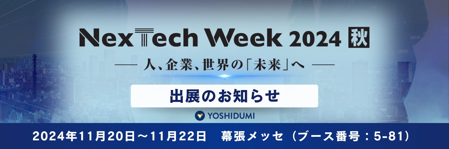 吉積情報株式会社(本社:東京都千代田区、代表取締役社長 秋田晴通)は、11⽉20⽇(水)- 11⽉22⽇(金)に幕張メッセで開催される最新AI技術の専門展示会、NexTech Week 第5回 AI・人工知能EXPO【秋】に出展することをお知らせいたします。