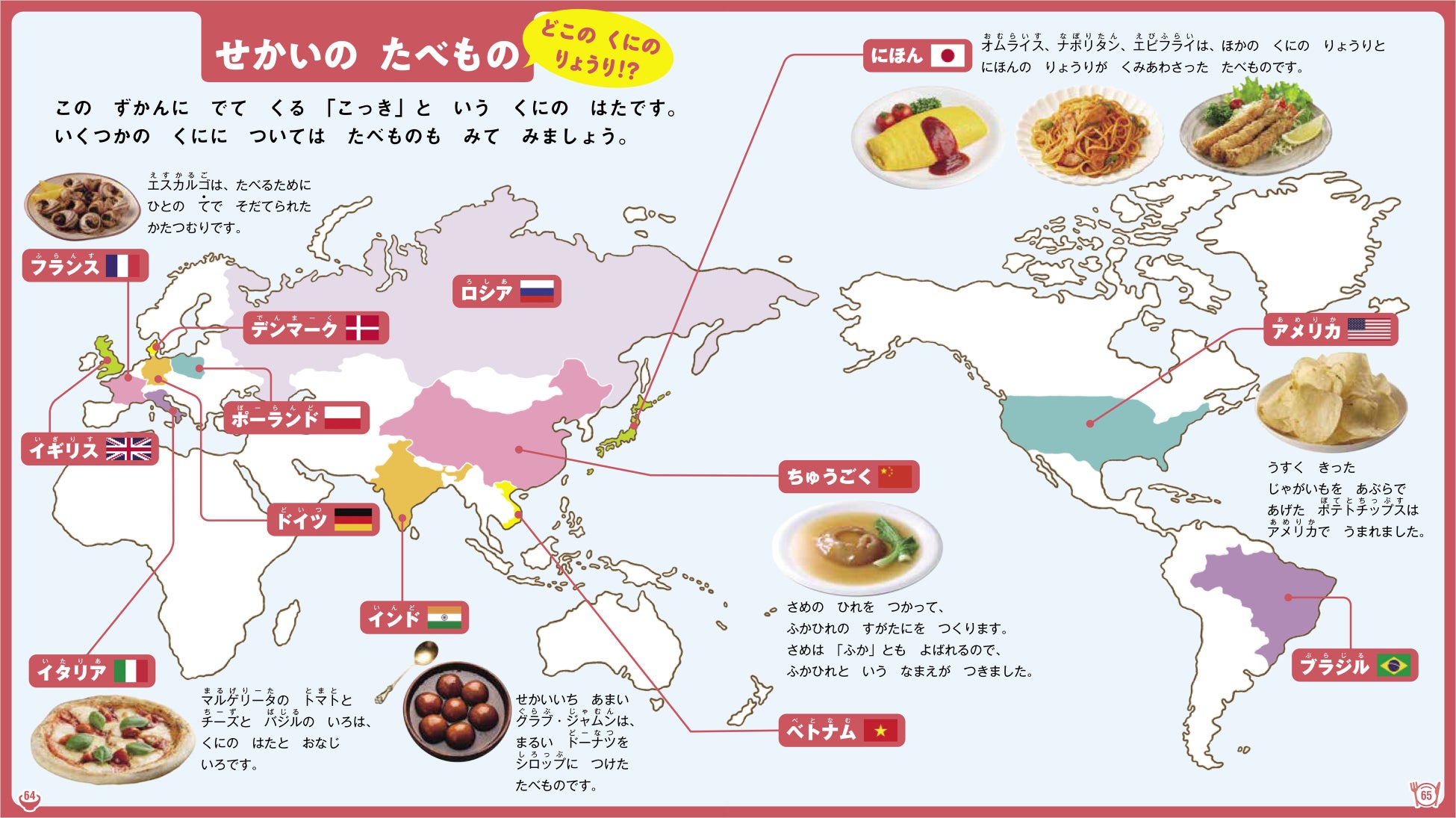 各国の伝統的・特徴的なたべものと場所がわかります。