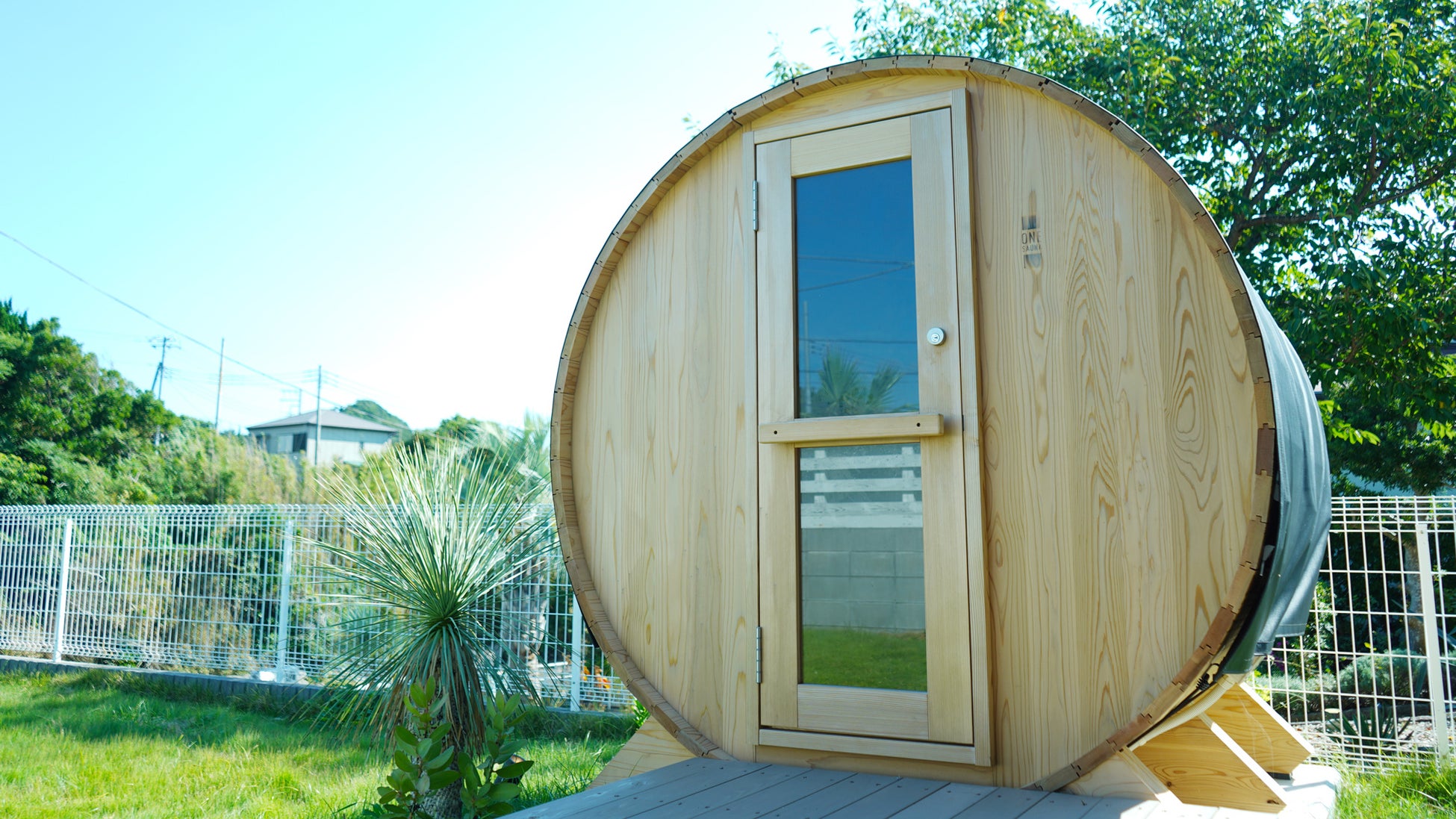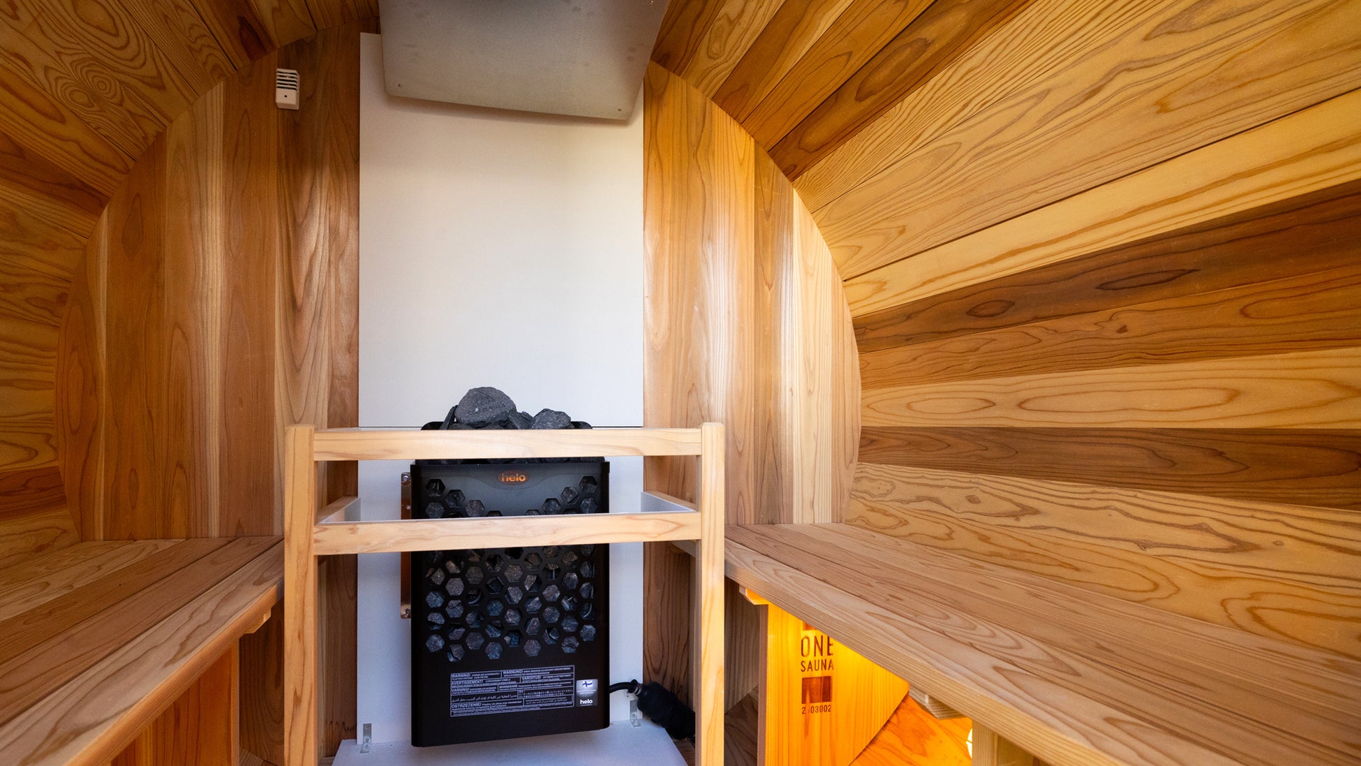 各棟にはサウナブランド「ONE SAUNA」のバレルサウナを導入。
