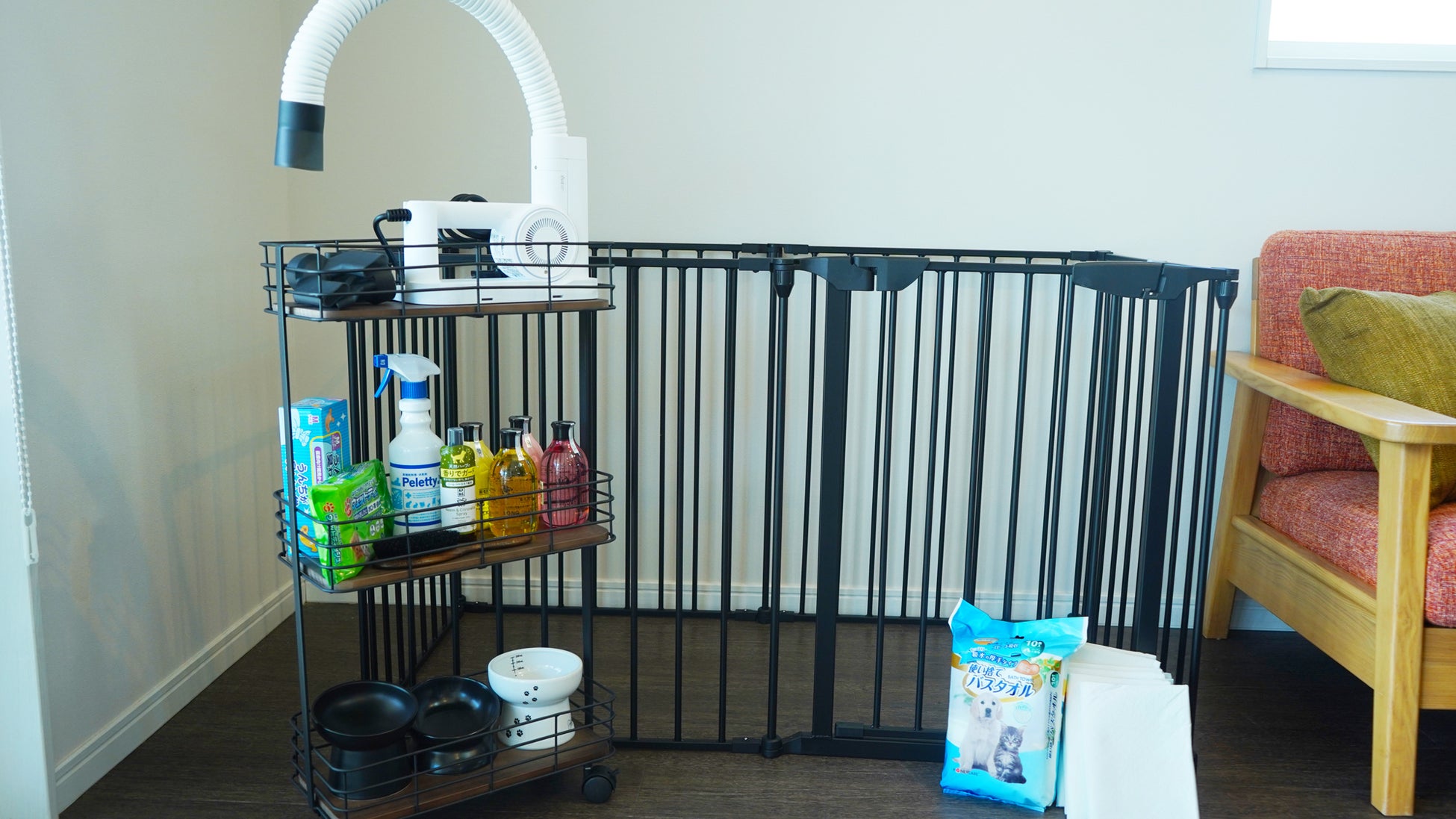 除菌スプレーやシャンプー、ドライヤー、リードやケージまで、滞在に必要なペット用品を幅広くご用意。