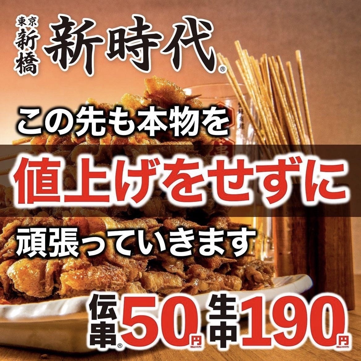 新時代は若者からご年配の方までどなた様でもお気軽にご来店頂くお店。客単価は2,000円。一度ご来店していただければ、ファンになっていただけると思います。迷わず「新時代にしよう」と月に何度も通いたくなるお店を目指します。