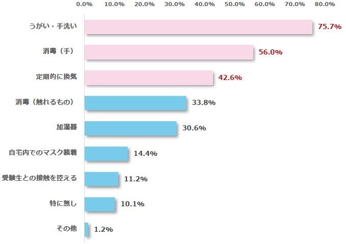 ・受験生の家庭のコロナ対策、最多回答は「うがい・手洗い」、半数以上の家庭で「消毒(手)」も実施