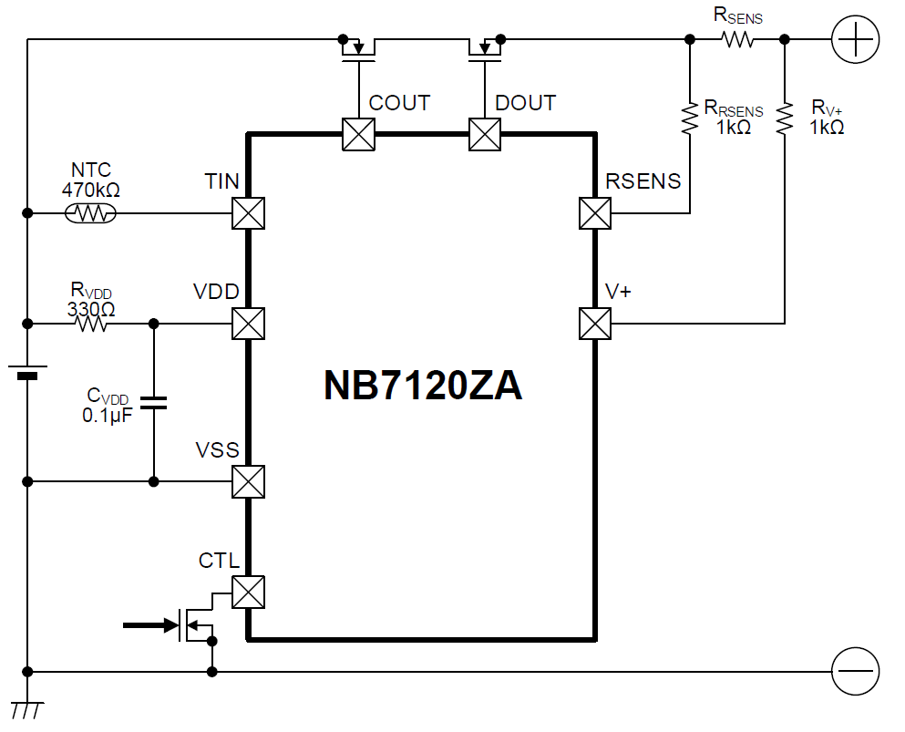 業界トップレベルの高精度を誇る1セル リチウムイオン電池用 温度保護機能付きハイサイド保護IC「NB7120シリーズ」新発売