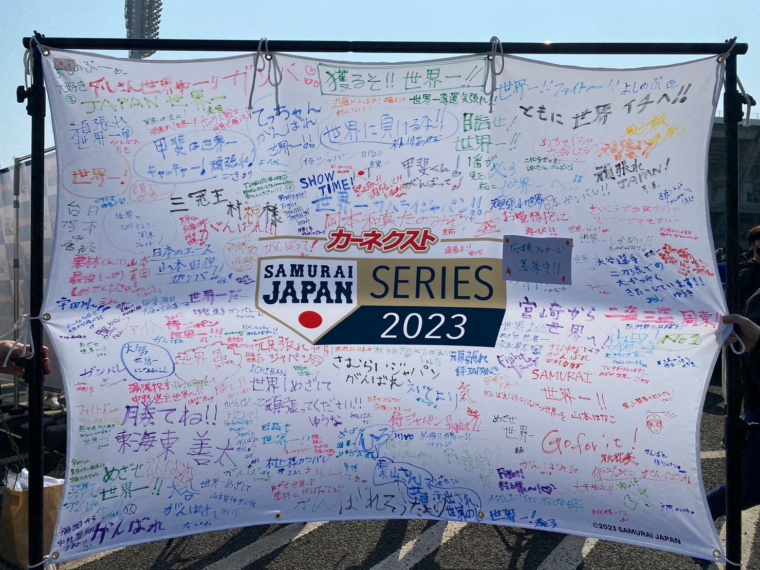 皆様の『世界でいちばんの応援』が「侍ジャパン」に届き、世界一を掴む力になってくれると共に、自身の書いた応援メッセージが実際に「侍ジャパン」へ届くことで、ご来場のファンの皆様が世界一を目指す「侍ジャパン」の挑戦とそれにかける熱意に触れ、自身の夢に向かって勇気を貰えるような機会となることを願っております。