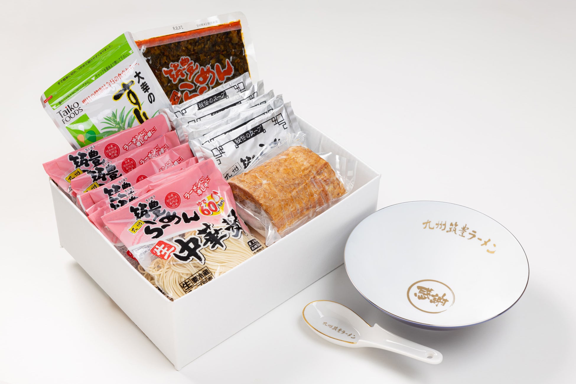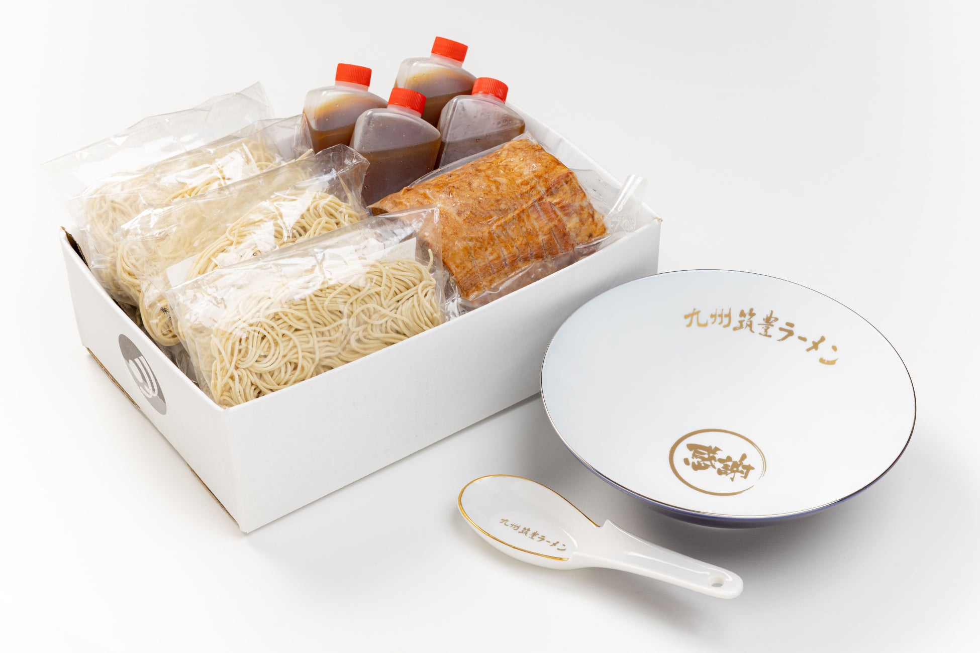 内容:香蘭社製オリジナル丼・レンゲ、中華麺100g×6、とんこつスープ80g×6、焼豚270g、