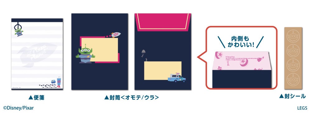 レターセットAは、おもちゃのようなポップなカラーがポイントで、レターセットBは、宇宙を連想する深い紺色ベースがポイントのデザインです。