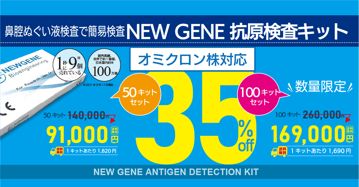 【35%OFF 研究用NEW GENE抗原検査キット割引き】ご好評につきキャンペーン設定|100セット分追加