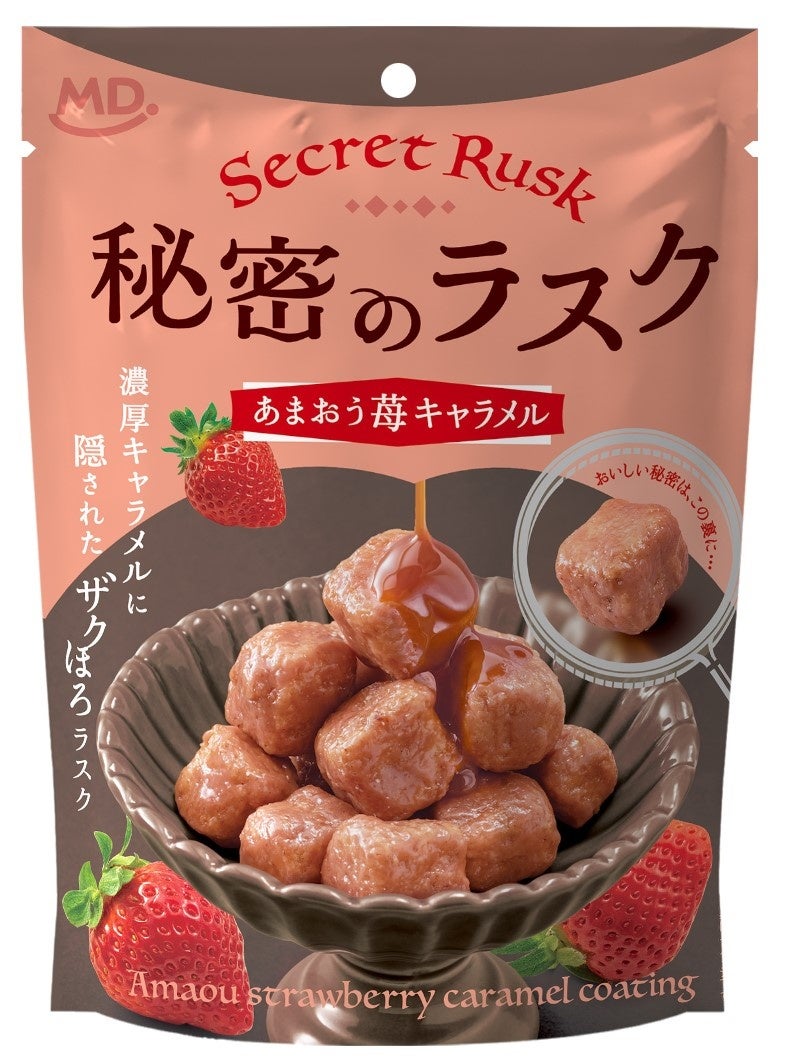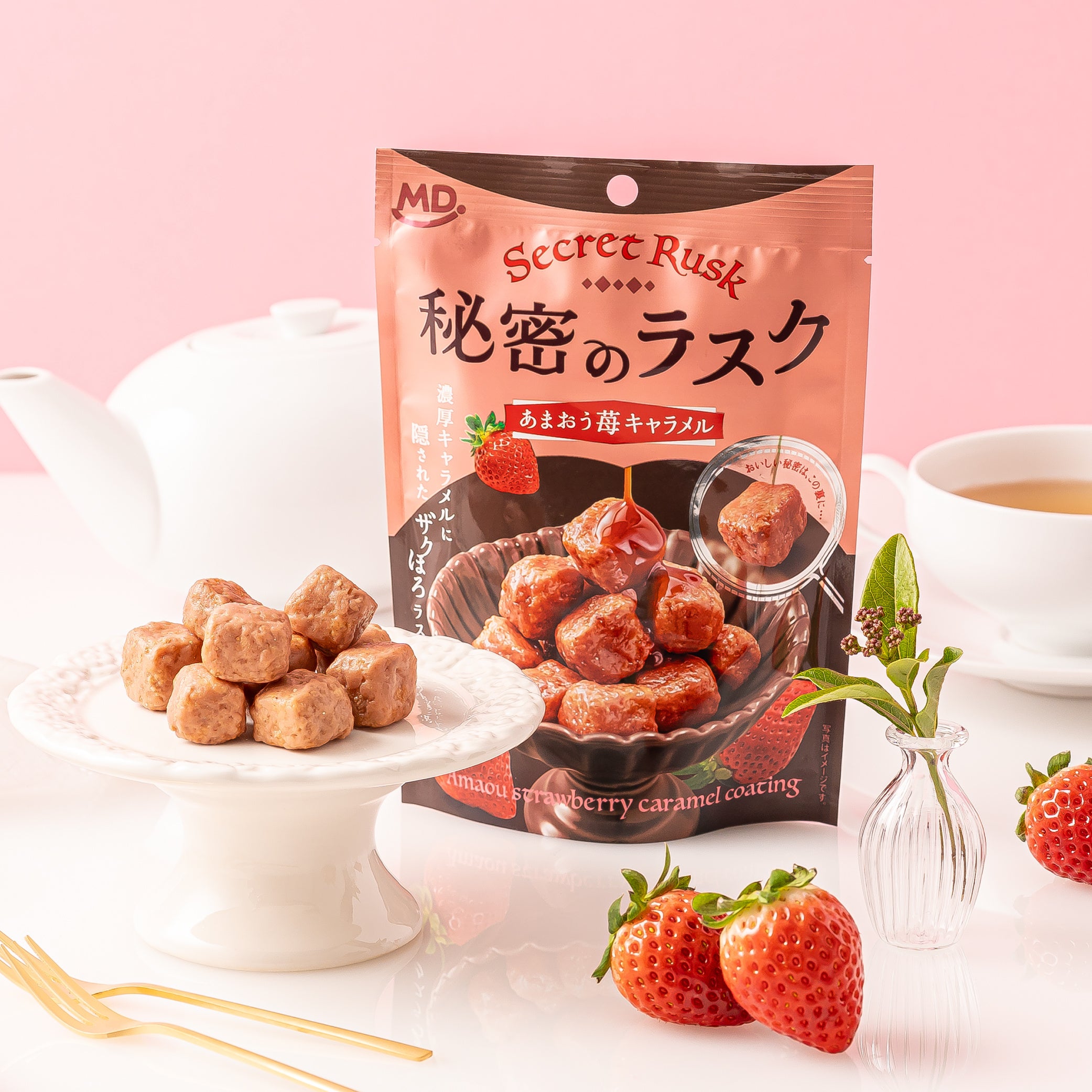 株式会社MDホールディングス(本社:大阪府東大阪市)は、バターをたっぷり使用した濃厚なキャラメルを贅沢に絡めたお菓子『秘密のラスク 焦がしキャラメル』『秘密のラスク あまおう苺キャラメル』を、2025年3月3日(月)より、全国で発売いたします。