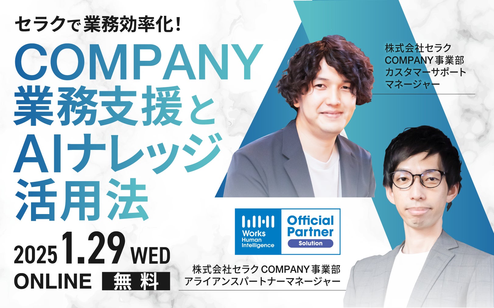 【1/29(水) 無料ウェビナー】セラクで業務効率化!~COMPANY業務支援とAIナレッジ活用法~