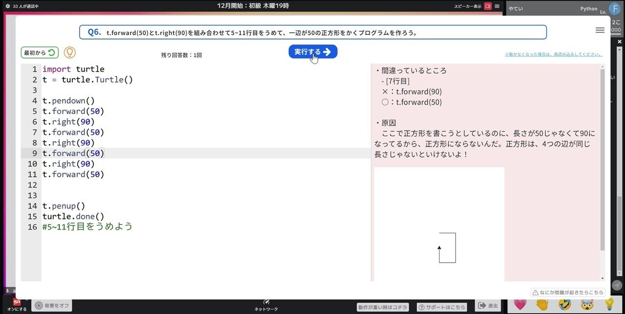 Pythonをインストールしたり、フォルダ・ファイルを管理したりという面倒な設定なしで、ブラウザ上でPythonを動かせる環境を用意しています。事前準備なしでクラスに参加するだけでプログラミングを行えます。