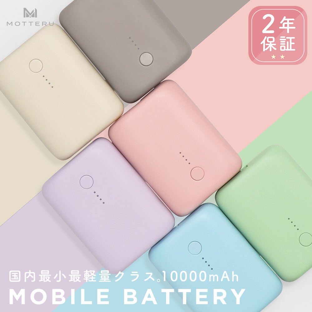 MOTTERUで大人気の国内最小最軽量10,000mAhモバイルバッテリー(店舗販売用)に新色アーモンドミルクカラーが登場
