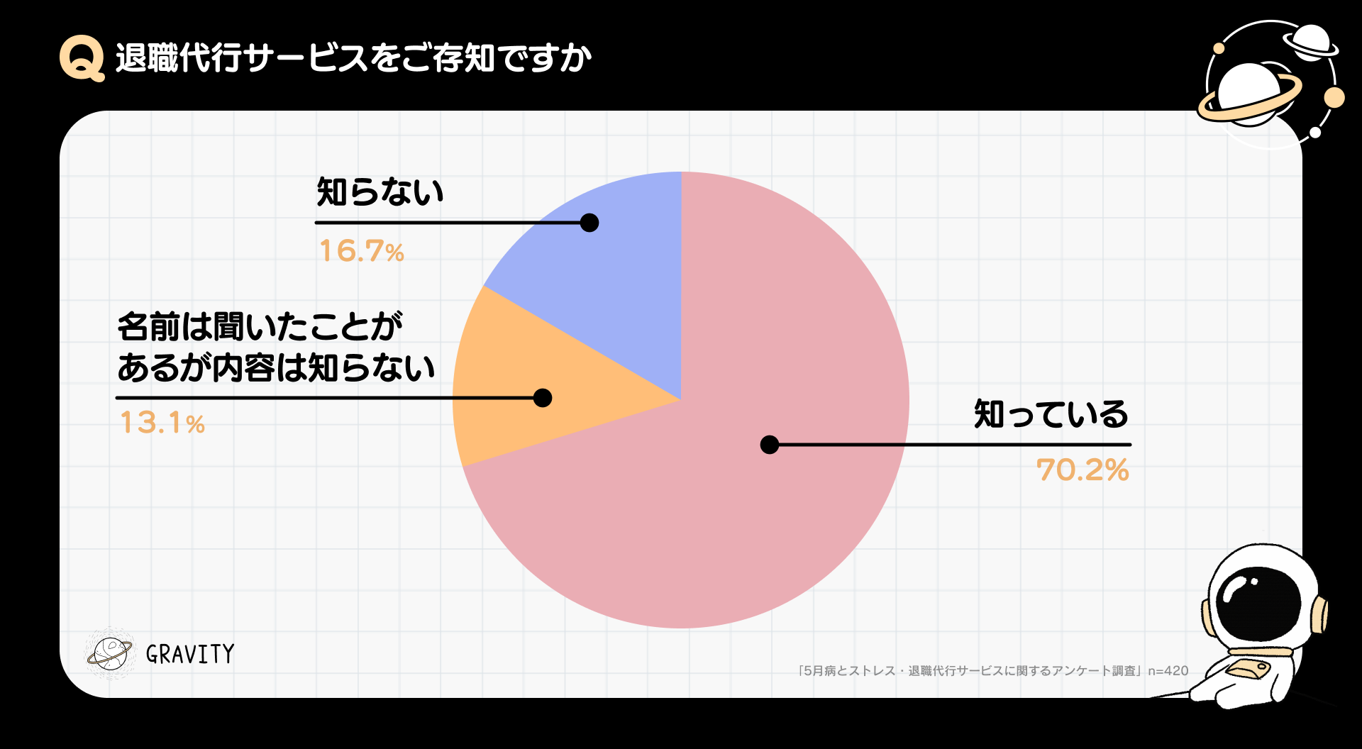 退職代行サービスを「知っている」は7割だが、サービスを「利用したくない」は約7割。