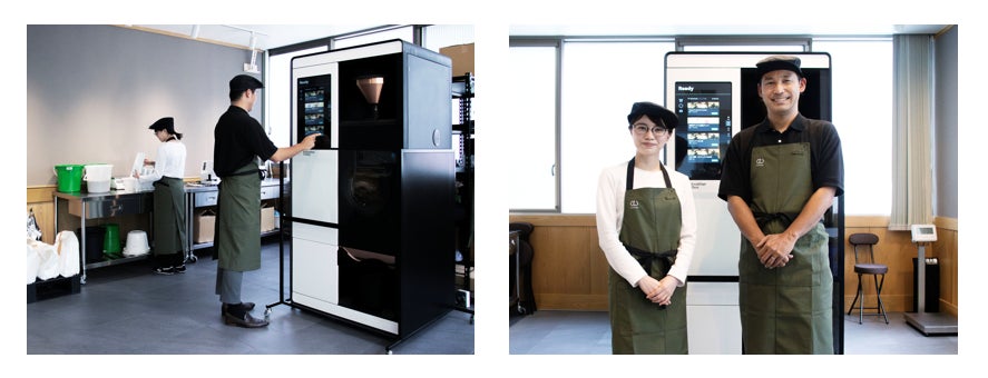 従来の焙煎機は、焙煎時に200~300度に到達するため、常に監視する必要があります。また、煙が上がり熱風が発生するため煙突も必要です。しかし、本焙煎所に導入している「Bellwether Roaster(以下、「本機」)」は高温で煙を焼くことで煙や熱風を出さず、室内でも安全に焙煎ができます。さらに、焙煎機以外の部分でもCUクルーのけがを防止するため、高温になる機械部分には特注のガードをつけ、珈琲豆の包装機も包装紙を感知したときのみ作動する仕様にしています。