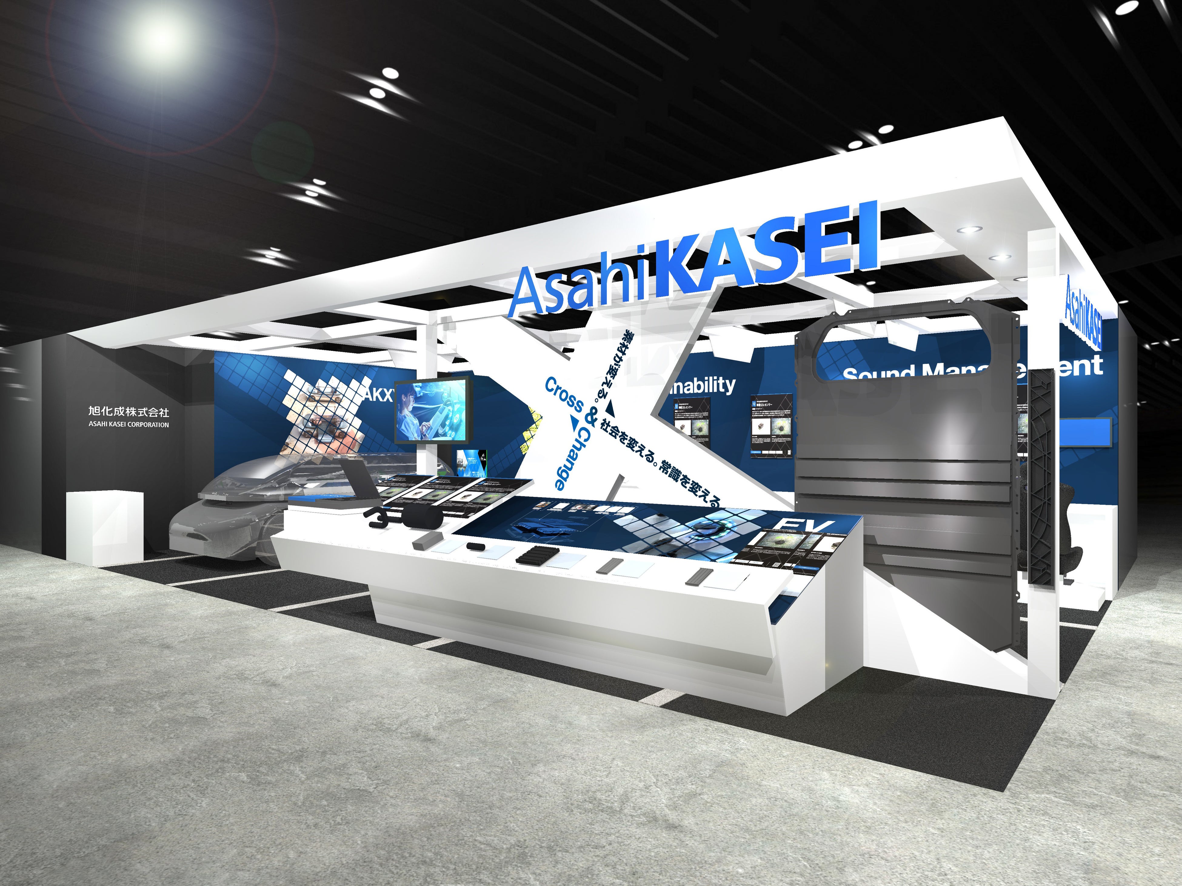 当社グループのブースでは、主に3つのテーマに沿った展示を予定しています。今後普及が見込まれる電気自動車に活用可能なソリューションを集めた「EV」、ユーザーの乗車体験向上に大切な要素である音響関連の技術を集めた「Sound Management」、そして今後、自動車関連のモノづくりに重要な「Sustainability」に寄与する技術、それぞれのテーマに沿った出展製品、技術紹介をします。