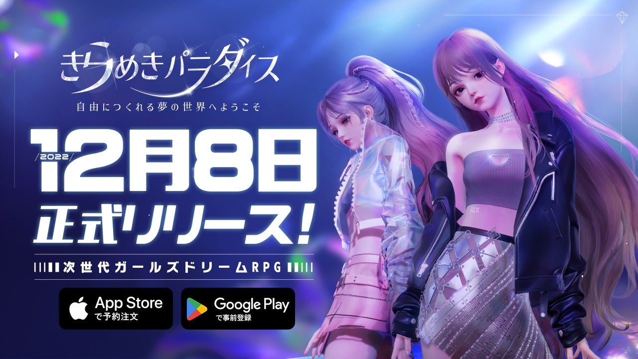 VVANNA STUDIOは、次世代ガールズドリームRPG『きらめきパラダイス~自由につくれる夢の世界へようこそ~』が、明日2022年12月8日(木)8時より正式サービス開始することをお知らせいたします。また、事前登録者数は150万人を突破し、全事前登録特典の配布が決定いたしました。さらに、2022年12月5日(月)より、新宿・渋谷・池袋など、都内の駅を中心に大型広告を掲出中です。