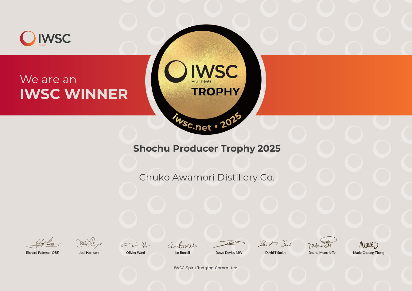 本賞は、単一製品の受賞とは異なり、出品したすべてのアイテムの総合的な品質・技術力・一貫した酒造り、マーケティング活動、そして持続可能な取り組みへの姿勢が評価され、年度で “最も優れた焼酎生産者” と認められた 1社のみに授与される、IWSCで最も名誉ある賞です。