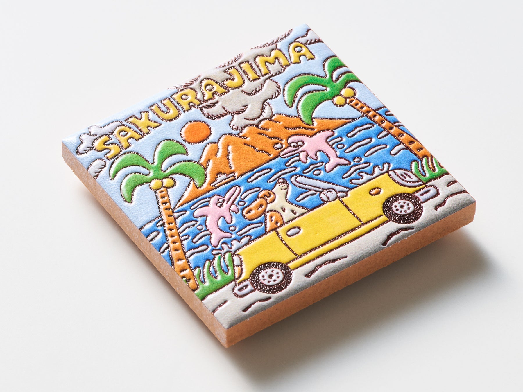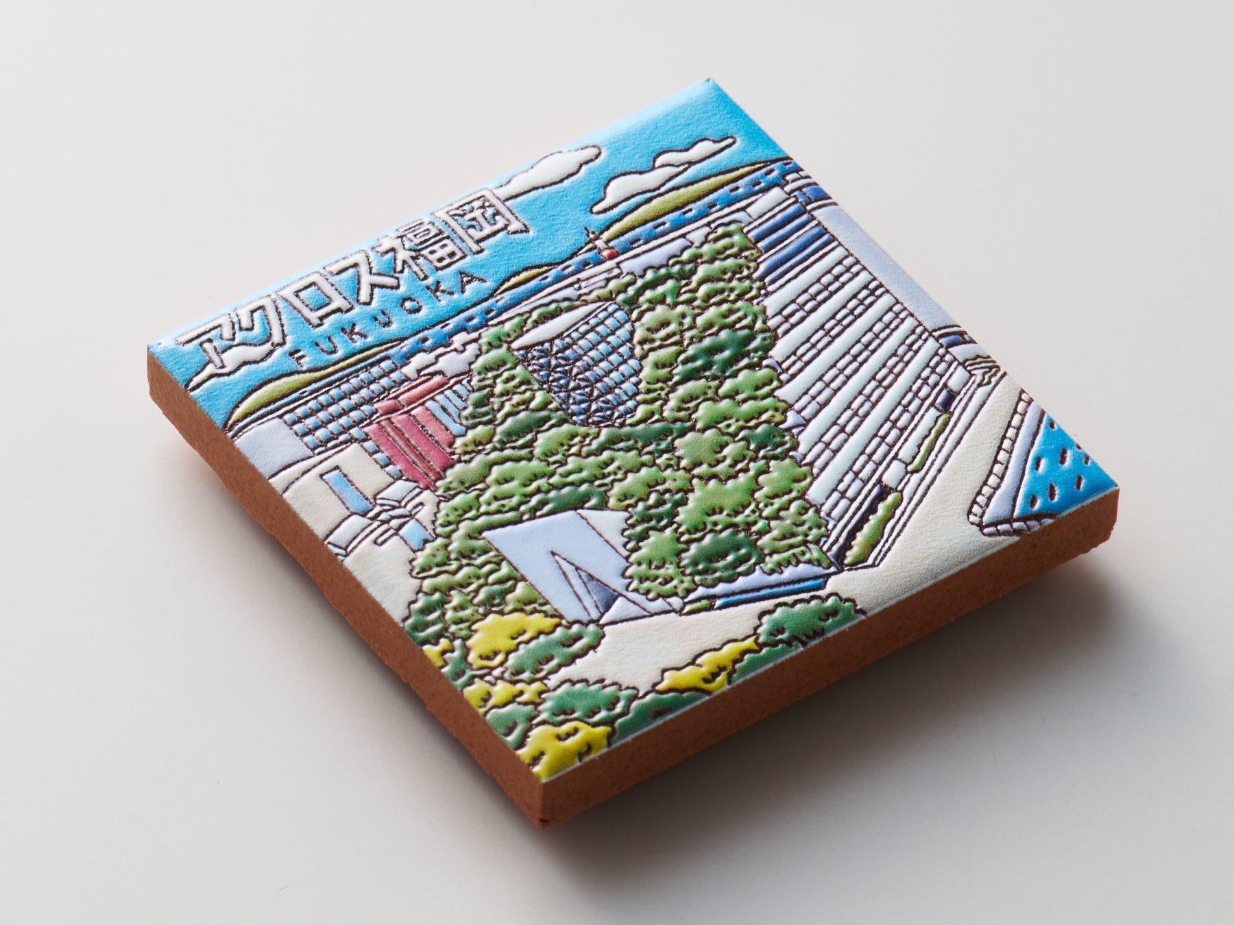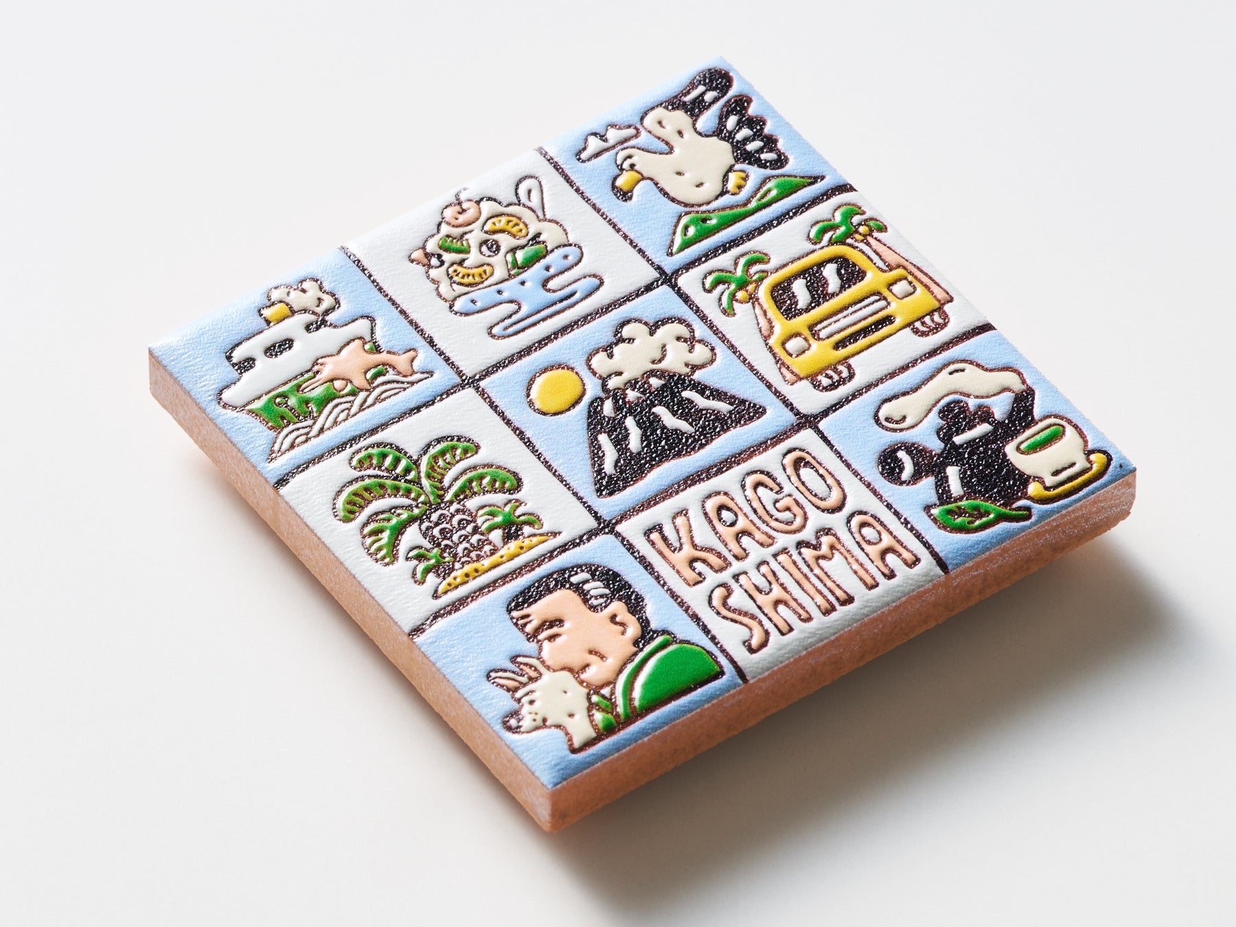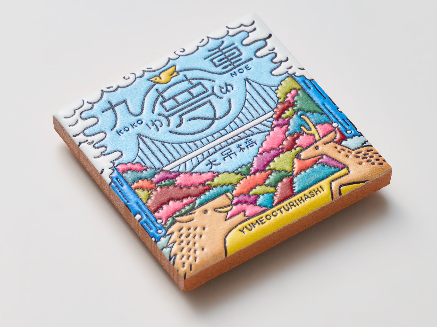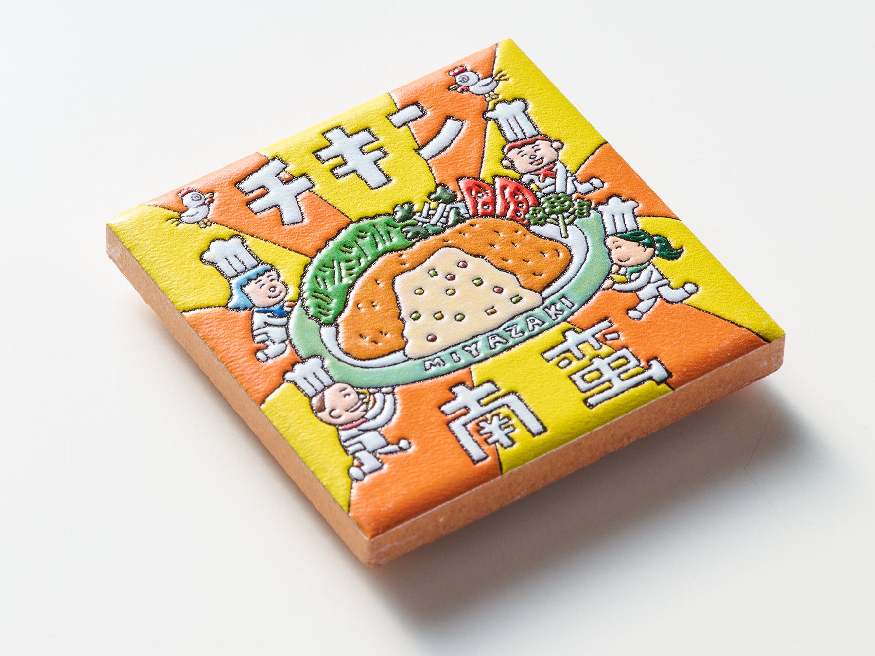 ご当地クリエイターが描いたイラストをもとに、宮城県女川町の「みなとまちセラミカ工房」が15cm角のスペインタイルを制作、そのタイルをスキャンしてPENON独自のプリント技術で立体化するという3段階の工程を経て、スペインタイルの特徴を活かした『旅するマグネット』を仕上げています。