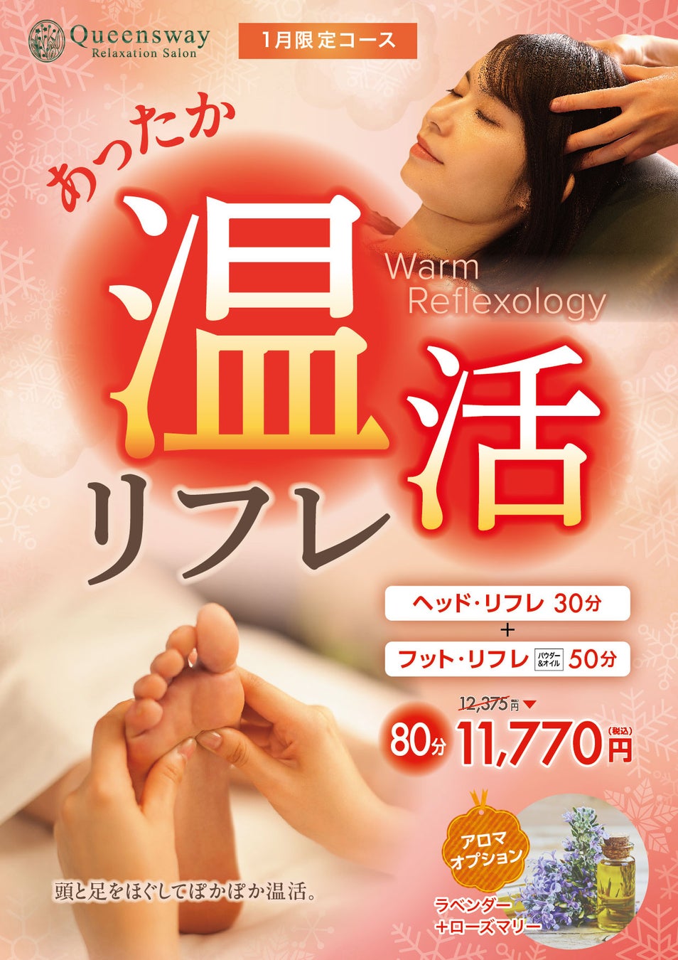 このたび、Queenswayが2025年1月限定でカラダを芯から温める「あったか温活リフレ」を提供いたします。