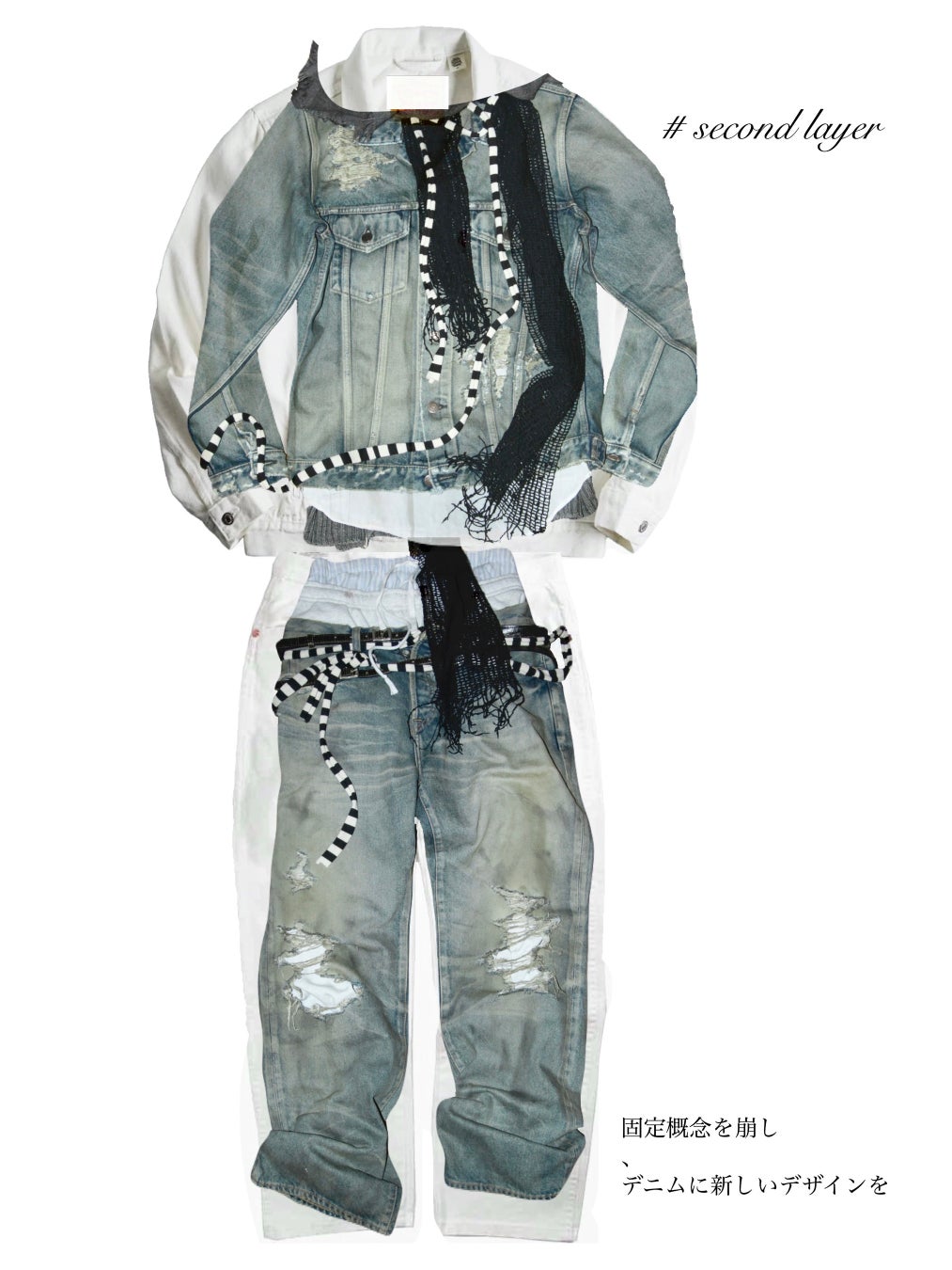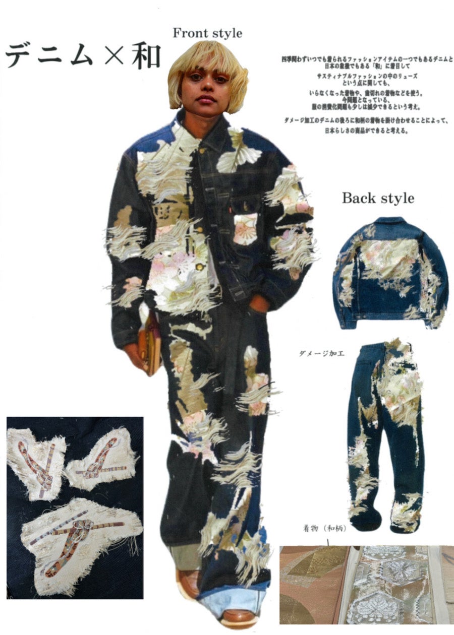 本イベントでは、サステナブルファッションとしてのデニム・ジーンズの可能性や、世界的に高く評価される日本有数のデニム・ジーンズの産地「三備産地」の魅力を紹介することが主なテーマとなっています。OIFは、三備産地の企業である ㈱WHOVALと協業し、一点もののデニムジャケットやパンツを制作しました。これらのアイテムは学生がデザインし、産地の職人(クラフトマン)が製品化したものです。4月19日(土)には、高島屋大阪店 7階催会場で開催されるファッションショーにおいて、スタイリスト学科の学生が、三備産地の企業7社の商品とともにスタイリングを組み、その魅力を広く発信します。