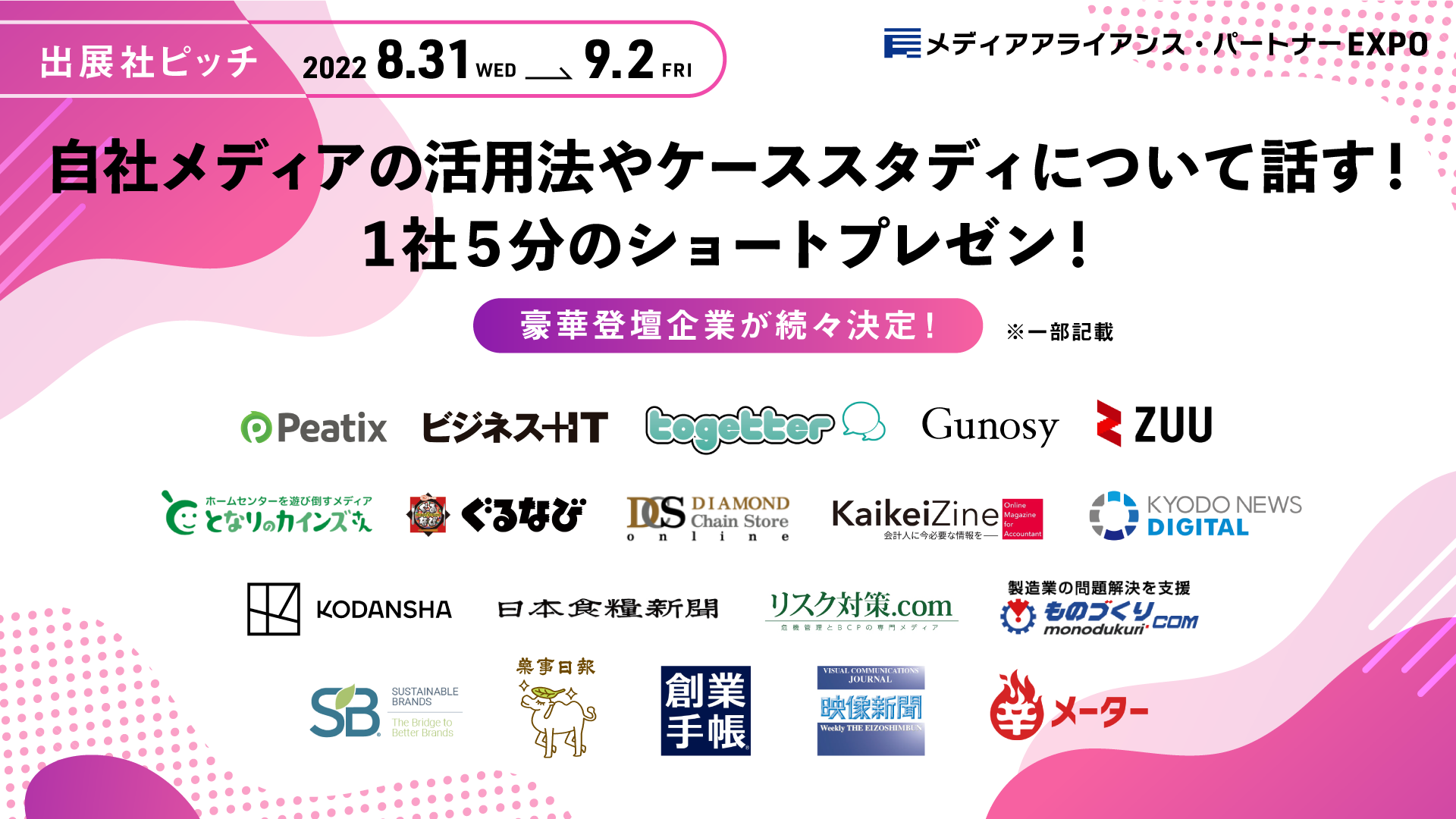メディアアライアンス・パートナー EXPO開催決定!最新のメディア活用術やケーススタディが分かる出展社による5分ショートピッチを無料配信!