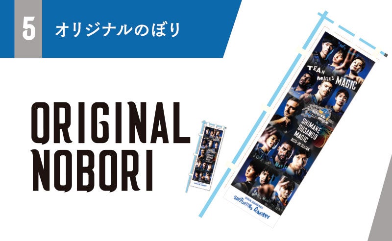 さらに、オリジナルのぼりを掲出して、島根をスサノオマジックブルーに染めます!街のいたるところに応援の風を起こし、地域全体でチームを盛り上げていただきます。