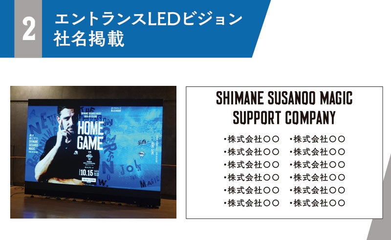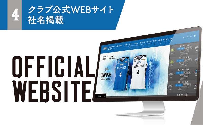 オーセンティックユニフォームやエントランスLEDビジョンでの社名掲出、クラブ公式サイトでの掲載など、企業・団体・個人事業主さまにご参加いただける特典をご用意。