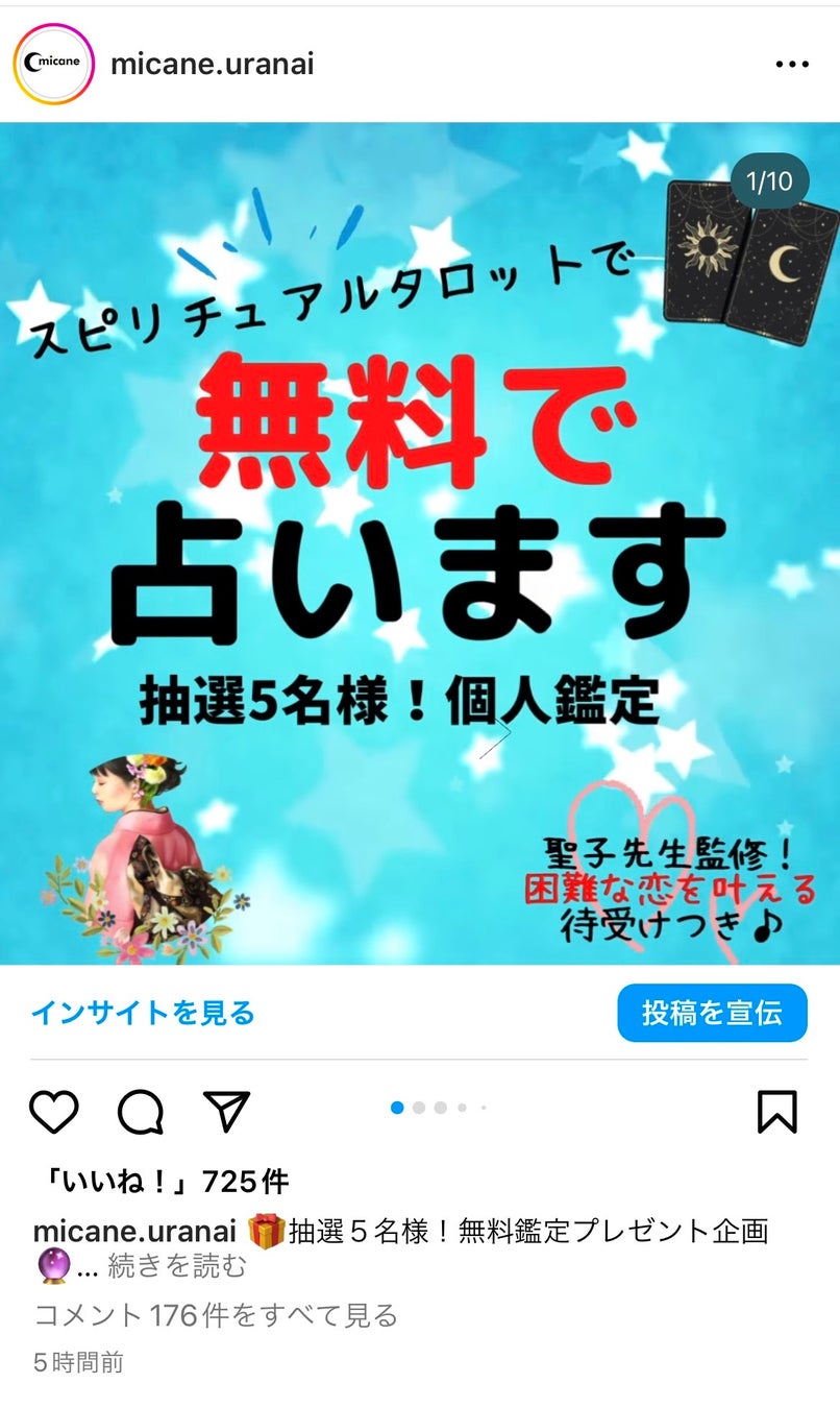 当たると評判のmicaneの占い師聖子が公式Instagramでタロット占い無料イベントを開催!