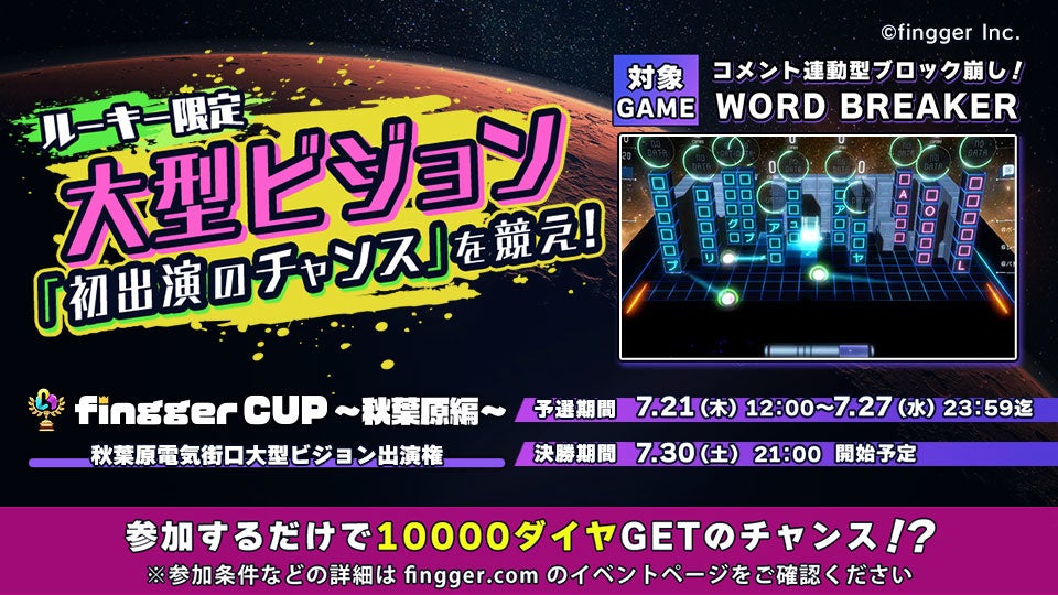 秋葉原大型ビジョンに出演するチャンス!7月21日(木)より、ルーキー限定 fingger CUPを開催!