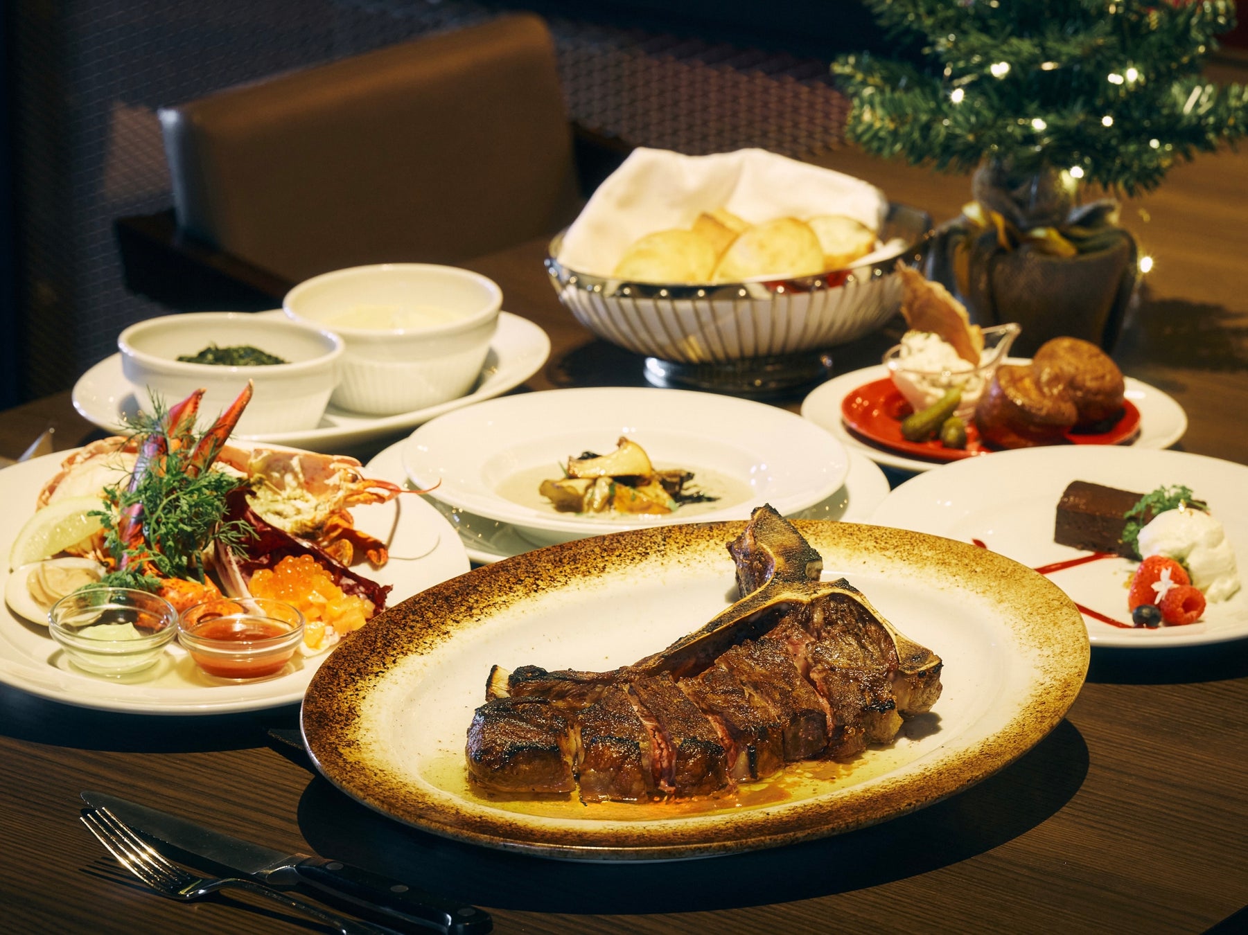 今年のクリスマスは、NYスタイルの豪快さと洗練さを両立させた特別コースをご用意。ランチタイムには、USプライムのボーンインステーキをメインに、新鮮な魚介と旬の食材を盛り込んだプレートで、贅沢なホリデーの昼食を。ディナータイムには、コースの華となるUSプライム Tボーンステーキをメインに、トリュフ香るスープ、豪華な海の幸シーフードプラッターなど、クリスマスの夜を最高潮に盛り上げる美食の饗宴をお届けします。