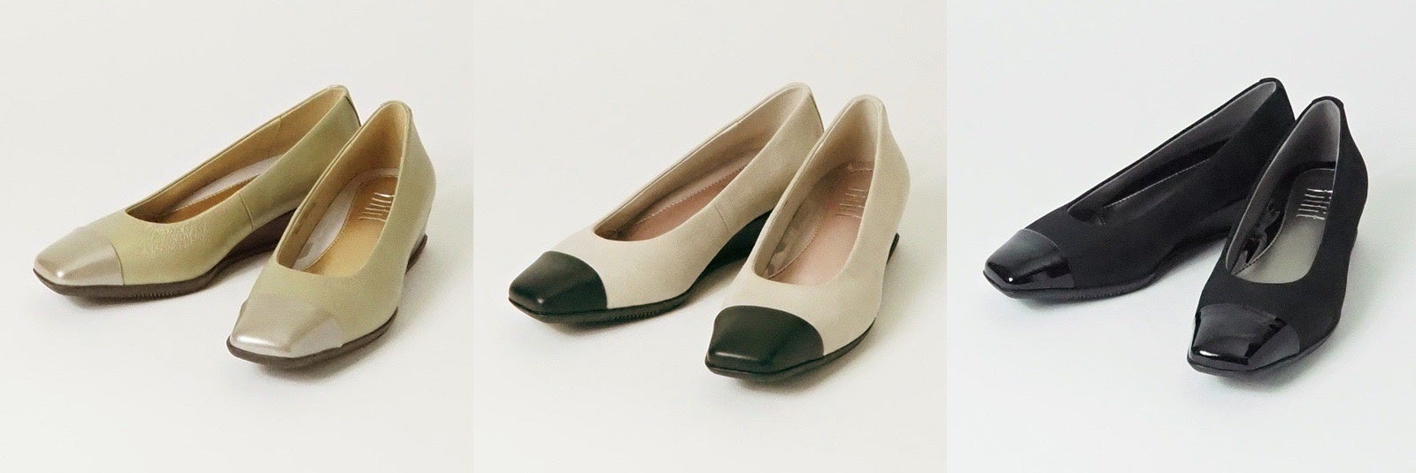 そこで当社では、足先を開放するオリジナルの木型「足なり設計」を採用し、足本来の形に合わせ高低差をつけた靴先の形状を用い、木型に合わせて開発された「3in1ソール」を使用したロングセラーの代表作『パンプニーカーシリーズ』から、新しくスクエアトウのデザインをローンチいたします。職場やオケージョンシーンでも活躍する気品と、女性らしさを底上げする意匠が凝らされた本シリーズは、毎日をアクティブに過ごす中でお洒落を楽しんでほしいという想いを反映しています。