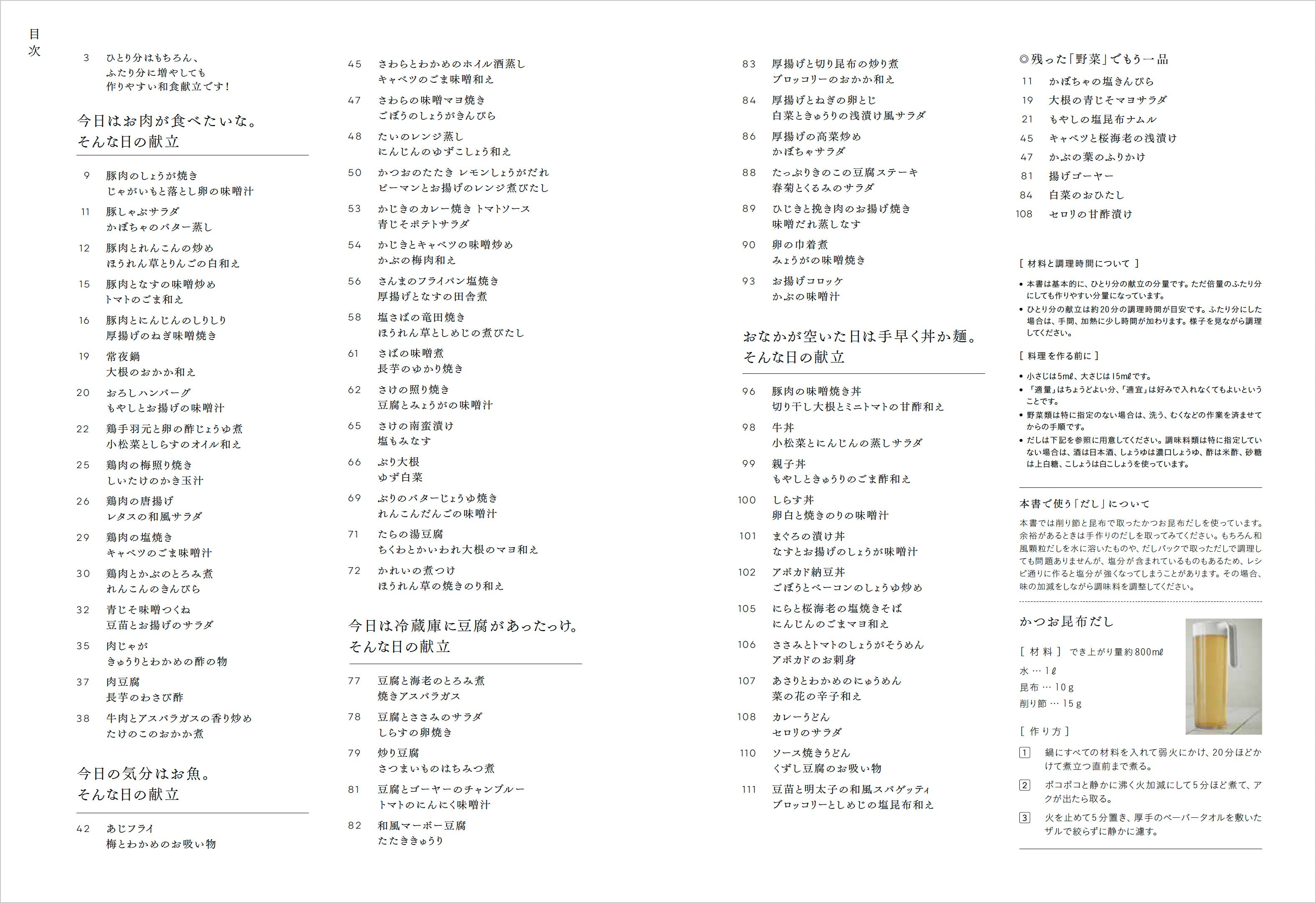 疲れて帰った夜は、おいしいごはんでリラックスしたい。そんなときはサッと買い物をして、サッと作れる和食が最高におすすめです。材料もシンプル、調味料も難しくない、なおかつやっぱりホッとする味。本書では20分で作れて白いごはんに合う、最高の2品献立をご紹介しています。