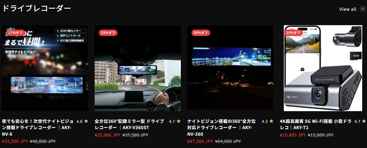 1.【AKEEYO】全てのドライブレコーダー製品(車載用・バイク用)